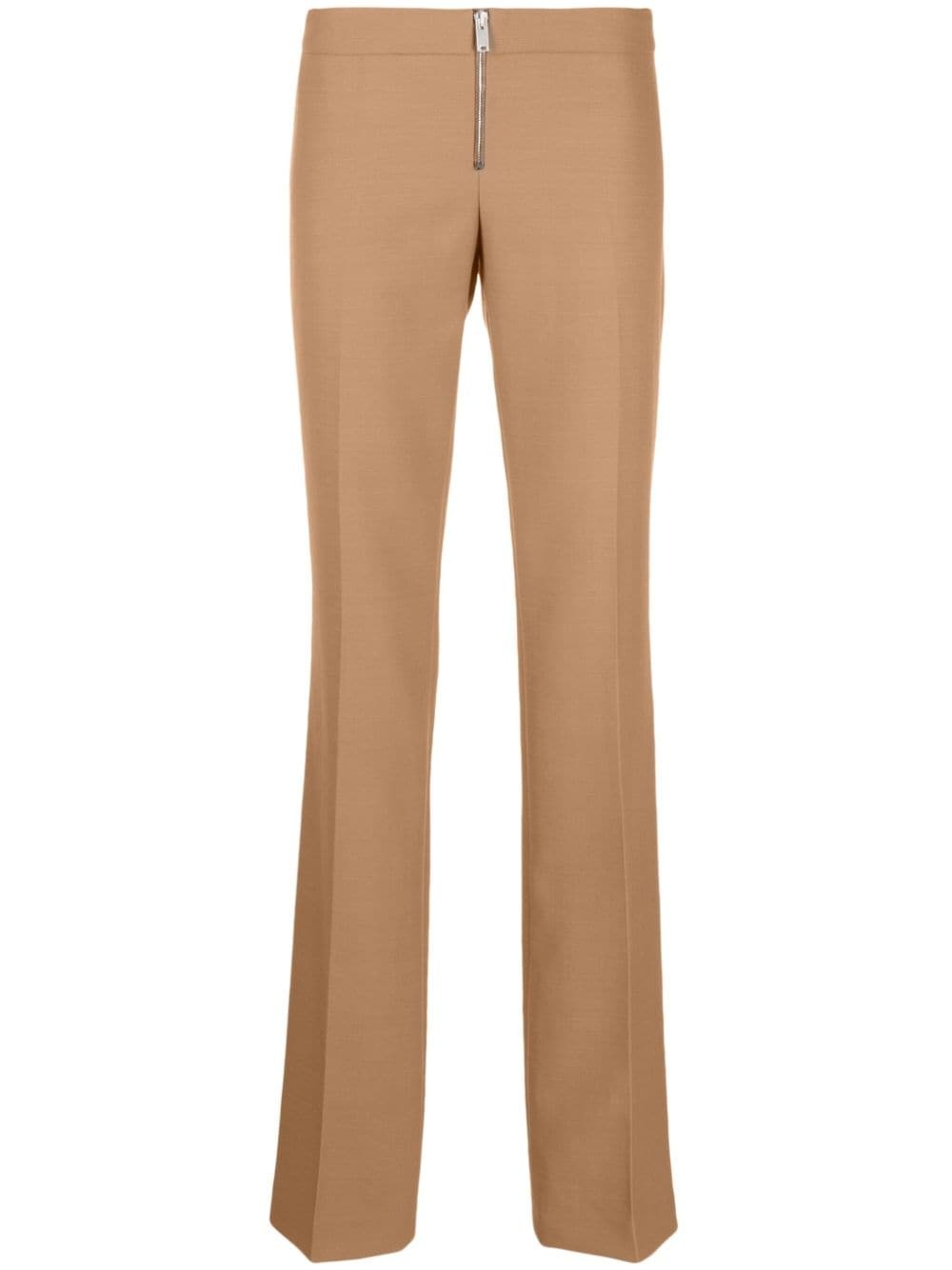 zip-up slim-fit trousers Highlights - Tobacco brown - Rws wool - Low-rise - Front zip fastening - Pressed crease - Slim cut Imported Composition RWS Wool 100% SIZE & FIT Model measurements Height 5 ft 10 in(1.78 m) Bust/Chest 30.7 in(78 cm) Hips 36.22 in(92 cm) Waist 25.59 in(65 cm) FittingInformation Designed for a slim fit, these trousers offer a close fit at the waist, allowing a comfortable close fit and some movement over the leg Made from a midweight non-stretch fabric This piece fits true to size – take your usual size Washing instructions Dry Clean Only