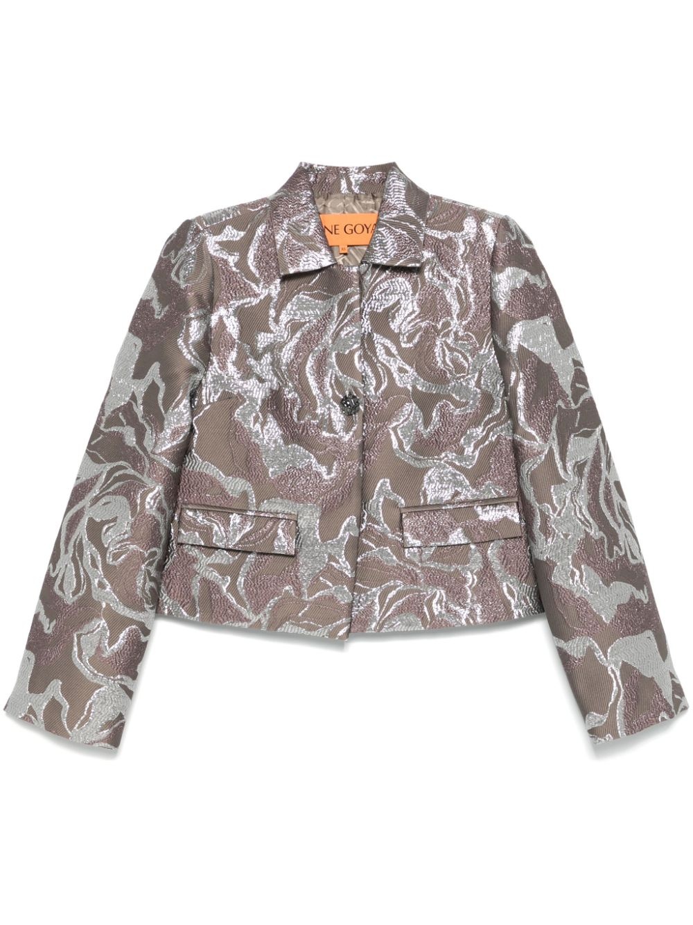 abstract metallic pattern jacket Highlights - Beluga grey - Recycled polyester blend - Woven jacquard - Concealed front button fastening - Abstract metallic pattern - Classic collar - Shoulder pads - Long sleeves - Two front flap pockets - Logo-embellished lining - Straight hem Imported Composition Outer: Recycled Polyester 66%, Metallic Fibre 21%, Polyamide 13% Lining: Recycled Polyester 100% SIZE & FIT Model measurements Height 5 ft 11 in(1.8 m) Bust/Chest 31.49 in(80 cm) Hips 36.61 in(93 cm) Waist 24.4 in(62 cm) FittingInformation Designed for a slim fit that sits just away from the body offering a close yet comfortable fit The vented hem offers movement at the rear Made from a midweight non-stretch fabric