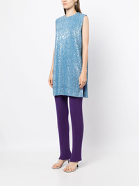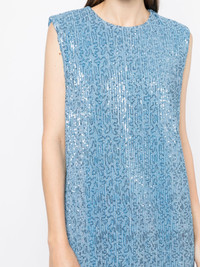Isha sequin-embellished tunic top Danish designer Stine Goya's eponymous brand exists as a counterpoint to the usually minimalist, muted scandinavian aesthetic. The Danish capital of Copenhagen is, for Goya, "a joyful source of inspiration", which the designer explores and showcases through colour and print. This simple, sleek tunic top is injected with life through its bright blue hue and sequins that embellish the entire piece for a dazzling effect. Highlights - Sky blue - Silk blend - Metallic effect - Sequin embellishment - Crew neck - Sleeveless - Side slits - Straight hem - Above-knee length Imported Composition Polyester 50%, Silk 50% SIZE & FIT Model measurements Height 5 ft 11 in(1.8 m) Bust/Chest 28.34 in(72 cm) Hips 35.43 in(90 cm) Waist 23.62 in(60 cm)