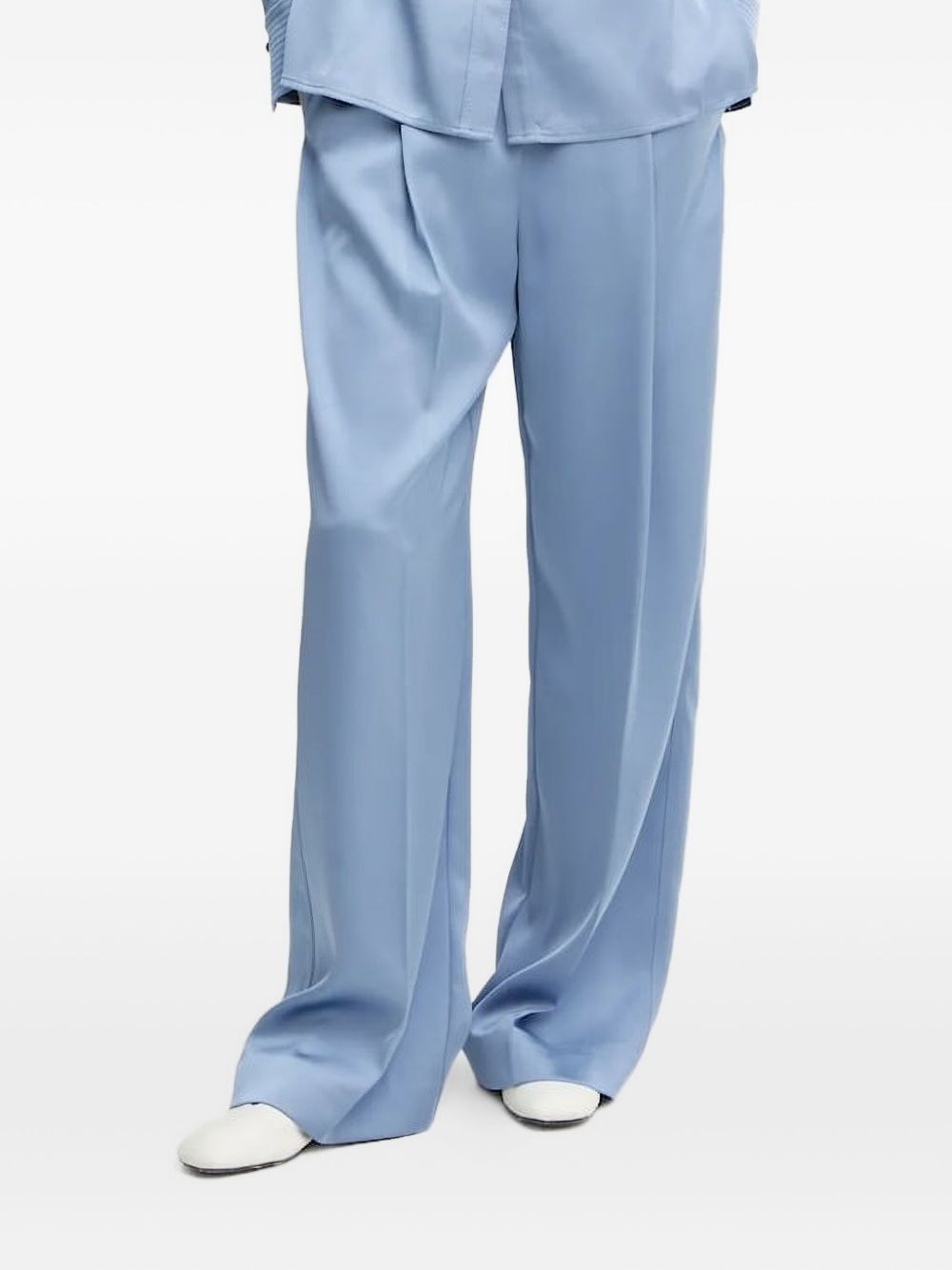 pleated wide-leg trousers Highlights - Light blue - Pleated detail - Wide leg - High waist - Elasticated waistband Imported Composition Recycled Polyester 100% Washing instructions Read Manufacturer Guidelines