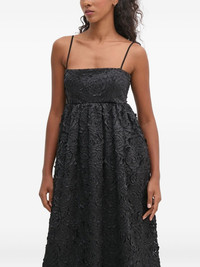 rose-embellished midi dress Highlights - Black - Rose motif - Empire waist - Spaghetti straps - A-line skirt - Textured fabric - Rear cut-out detail Imported Composition Outer: Recycled Polyester 95%, Polyester 5% Lining: Polyester 100% Washing instructions Read Manufacturer Guidelines