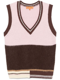V-neck vest Highlights - Light pink - Walnut brown - Knitted construction - Brushed finish - Ribbed v-neck - Two-tone design - Sleeveless - Ribbed trim - Multi-way stripe pattern detail - Ribbed hem Made in Italy Composition Acrylic 32%, Cotton 28%, Polyamide 25%, Alpaca 15% SIZE & FIT Model measurements Height 5 ft 9 in(1.75 m) Bust/Chest 31.88 in(81 cm) Hips 34.64 in(88 cm) Waist 24.01 in(61 cm) FittingInformation Designed for a relaxed fit, this piece allows for comfort and movement when worn Made with a midweight knit, this piece offers some stretch