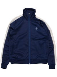 logo-embroidered track jacket Highlights - Navy blue/white - Front zip fastening - High neck - Long sleeves - Side stripe detailing - Embroidered logo at the chest - Two side slit pockets - Ribbed cuffs and hem Imported Composition Fabric 100%