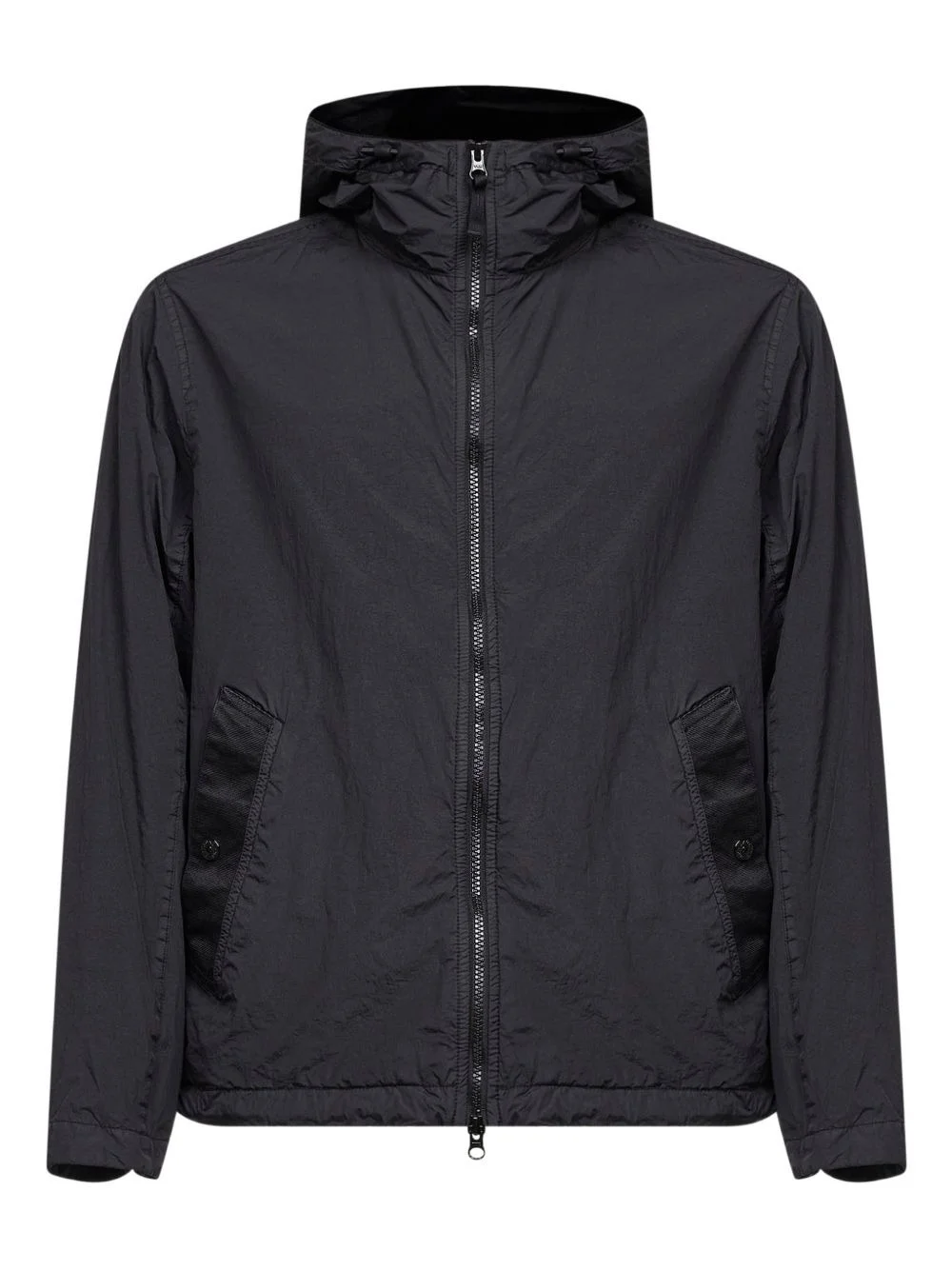 blue hooded jacket Highlights - Black - Snap-buttoned cuffs - Badge detail - Welt pockets - Elasticated hem Imported Composition Polyamide 100% Washing instructions Machine Wash