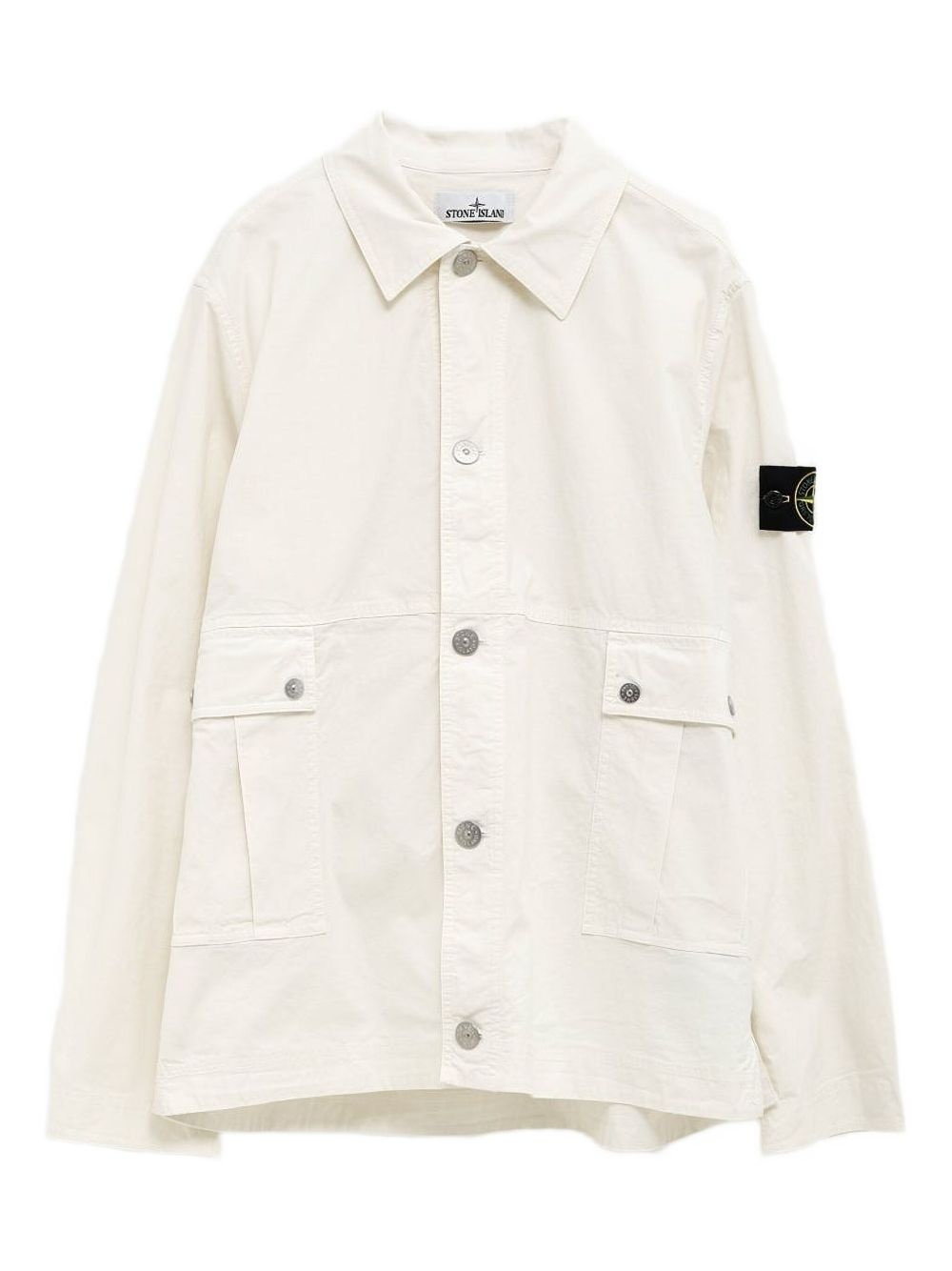 button-down shirt Highlights - Ivory - Front button fastening - Two front patch pockets - Signature detachable compass badge - Long sleeves Imported Composition Cotton 95%, Spandex/Elastane 5% SIZE & FIT FittingInformation Designed for a regular fit, allowing for a comfortably loose fit throughout the body Made from a midweight stretch fabric, this piece offers elasticity and flexibility when worn
