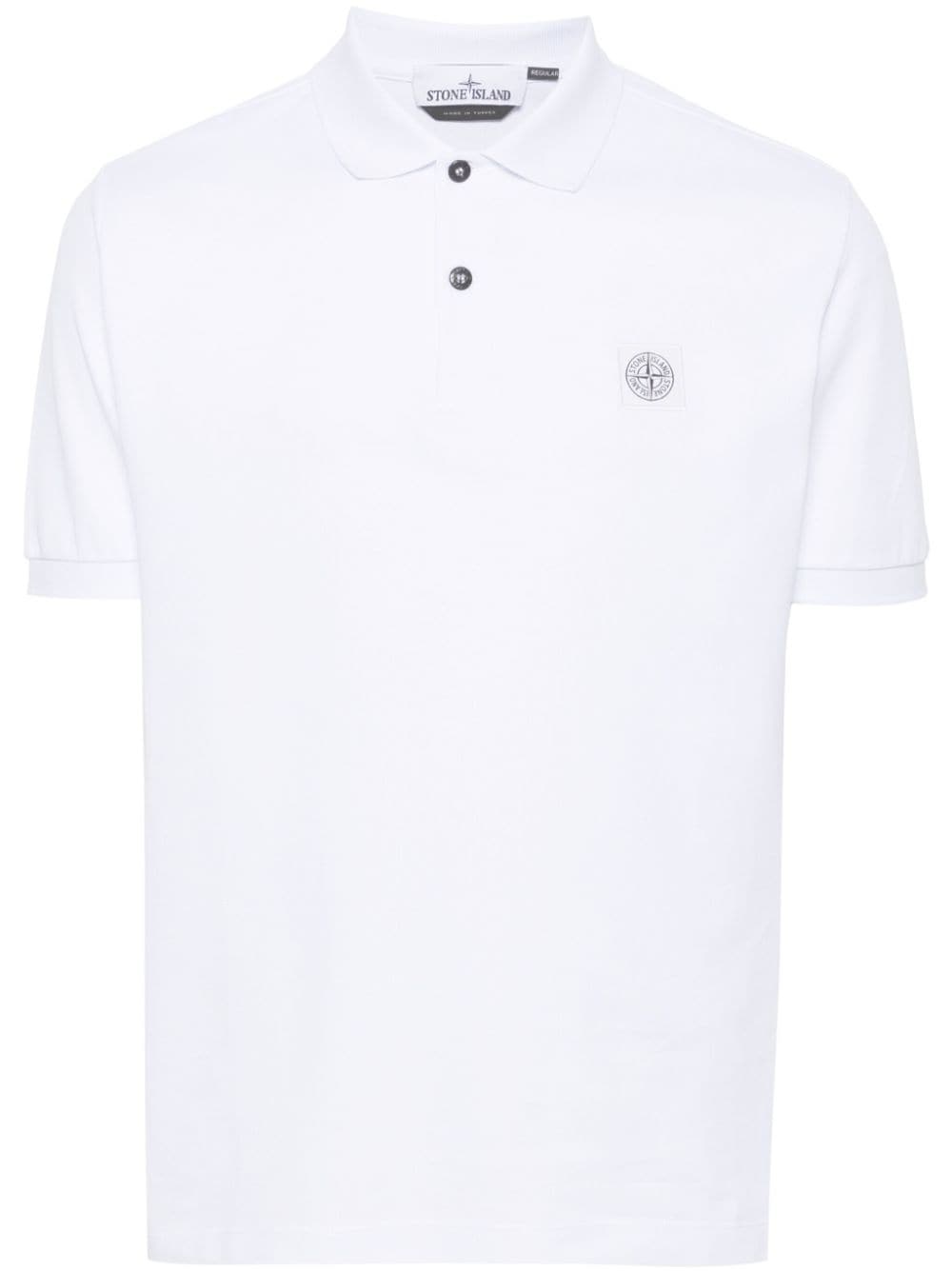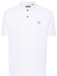 Compass-applique polo shirt Stone Island's compass logo takes inspiration from marine attire and the works by novelist Joseph Conrad. It was first introduced in 1982 and has since become a key part of the brand's DNA, shown at the chest of this classic cotton polo shirt. Highlights - Optical white - Cotton - Pique weave - Signature compass applique - Polo collar - Short sleeves - Short side slits - Straight hem - Front button placket Imported Composition Cotton 100% SIZE & FIT Model measurements Height 6 ft 2 in(1.88 m) Bust/Chest 35.03 in(89 cm) Hips 35.82 in(91 cm) Waist 27.95 in(71 cm) FittingInformation Designed for a regular fit, this polo shirt offers a comfortable loose fit throughout the body Made from a midweight non-stretch fabric, this piece offers minimal elasticity when worn Washing instructions Machine Wash