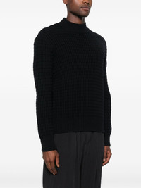 Compass-badge 3D-knit jumper Highlights - Jet black - Virgin wool - 3d-knit construction - Signature detachable compass badge - Crew neck - Long sleeves - Ribbed cuffs and hem Made in Italy Composition Virgin Wool 100% SIZE & FIT Model measurements Height 6 ft 2 in(1.88 m) Bust/Chest 36.61 in(93 cm) Hips 35.82 in(91 cm) Waist 27.95 in(71 cm) FittingInformation Designed for a relaxed fit, this piece allows for comfort and movement when worn The ribbed hem offers a close, comfortable fit Made with a midweight knit, this piece offers some stretch This piece fits true to size – take your usual size Washing instructions Hand Wash