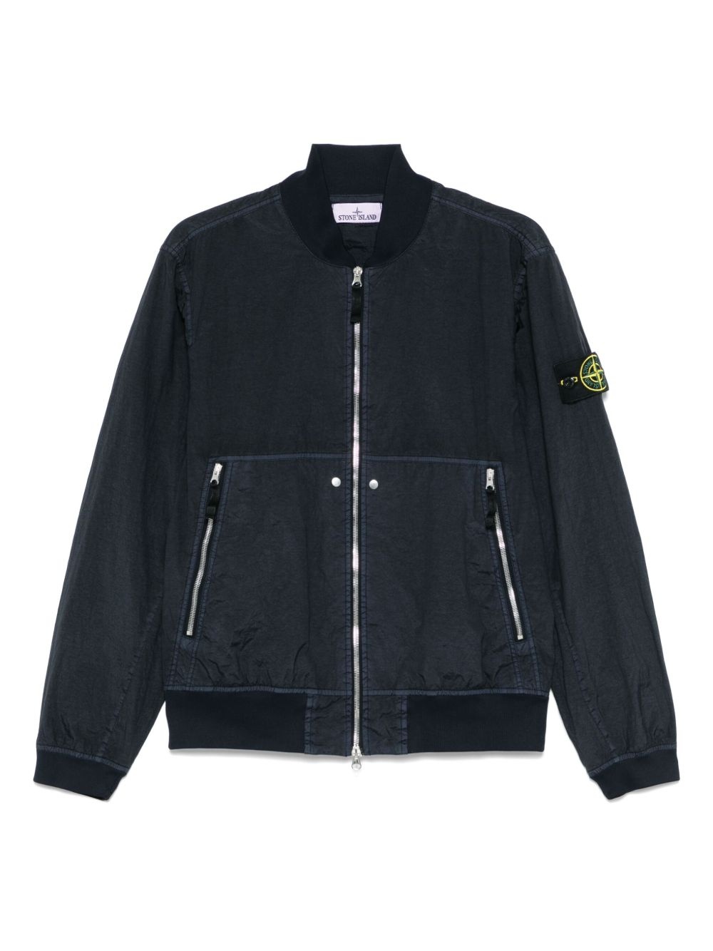 Compass-badge bomber jacket Highlights - Midnight blue - Front two-way zip fastening - Baseball collar - Two side zip-fastening pockets - Ribbed trim Imported Composition Outer: Polyamide 100%, Polyurethane Resin 100% Lining: Polyamide 98%, Elastane 2% SIZE & FIT Model measurements Height 6 ft 2 in(1.87 m) Bust/Chest 38.97 in(99 cm) Hips 37.99 in(96.5 cm) Waist 29.52 in(75 cm) FittingInformation Designed for a relaxed fit, this piece allows for comfort and movement when worn The ribbed hem offers a close, comfortable fit Made from a lightweight non-stretch fabric