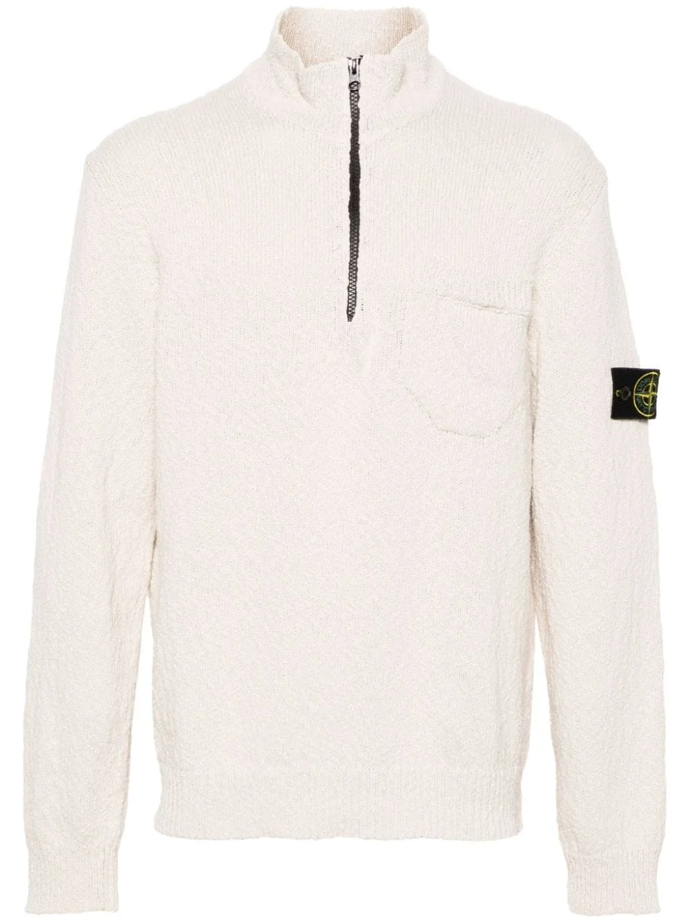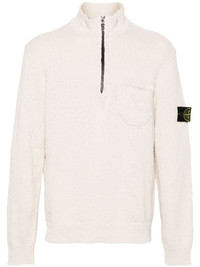 Compass-badge boucle jumper Highlights - Beige - Cotton-linen blend - Knitted construction - Boucle design - Signature detachable compass badge - High neck - Short front zip fastening - Long sleeves - Ribbed cuffs and hem - Chest patch pocket - Straight hem Made in Italy Composition Cotton 70%, Linen/Flax 30% SIZE & FIT Measurement CHEST 48.03 in(122 cm) SLEEVE LENGTH 26.37 in(67 cm) LENGTH 29.92 in(76 cm) Washing instructions Hand Wash