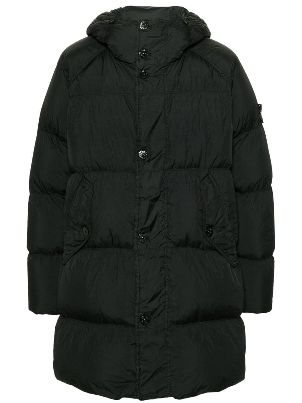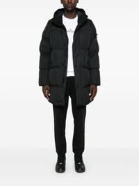 Compass-badge hooded padded coat Highlights - Black - Recycled nylon - Padded design - Duck down-feather filling - Garment dyed - Drawstring hood - Funnel neck - Long raglan sleeves with elasticated cuffs - Signature detachable compass badge - Two side flap pockets - Straight hem - Internal patch pocket - Concealed front zip fastening - Front button fastening Imported Composition Outer: Polyurethane Resin 100%, Recycled Nylon 100% Lining: Polyamide 100%, Duck Down 80%, Duck Feathers 20% SIZE & FIT Model measurements Height 6 ft 2 in(1.87 m) Bust/Chest 36.41 in(92.5 cm) Hips 37 in(94 cm) Waist 29.52 in(75 cm) FittingInformation Designed to be unstructured, offering a loose fit throughout Made from a padded non-stretch fabric, giving it no natural elasticity This piece fits true to size – take your usual size Measurement CHEST 45.66 in(116 cm) SLEEVE LENGTH 35.23 in(89.5 cm) LENGTH 34.25 in(87 cm) WAIST 46.06 in(117 cm) Shoulder Width 19.48 in(49.5 cm)