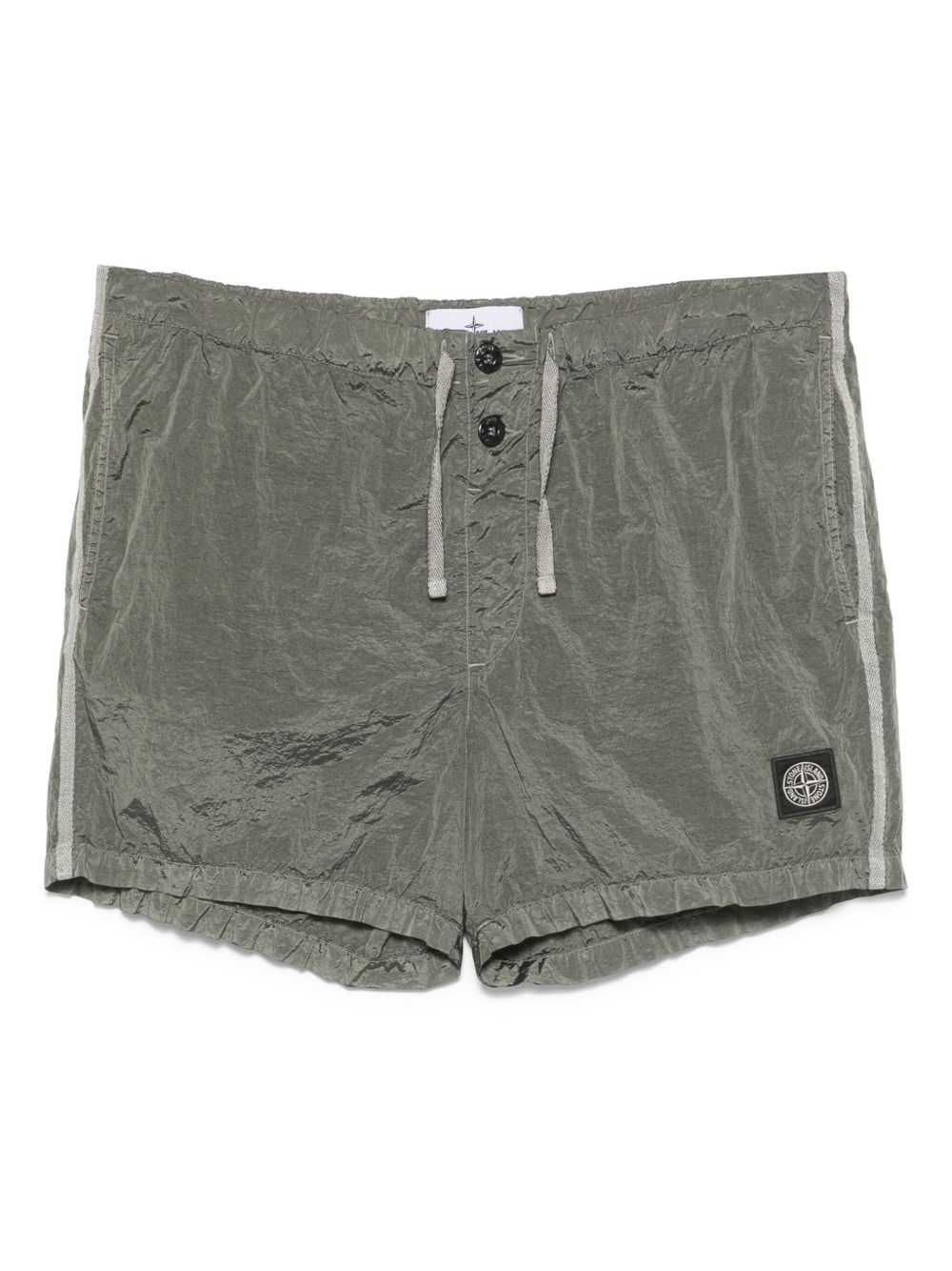Compass-badge shorts Highlights - Olive green - Elasticated drawstring waistband - Front button fastening - Two side inset pockets - Rear patch pocket Imported Composition Polyamide 100%