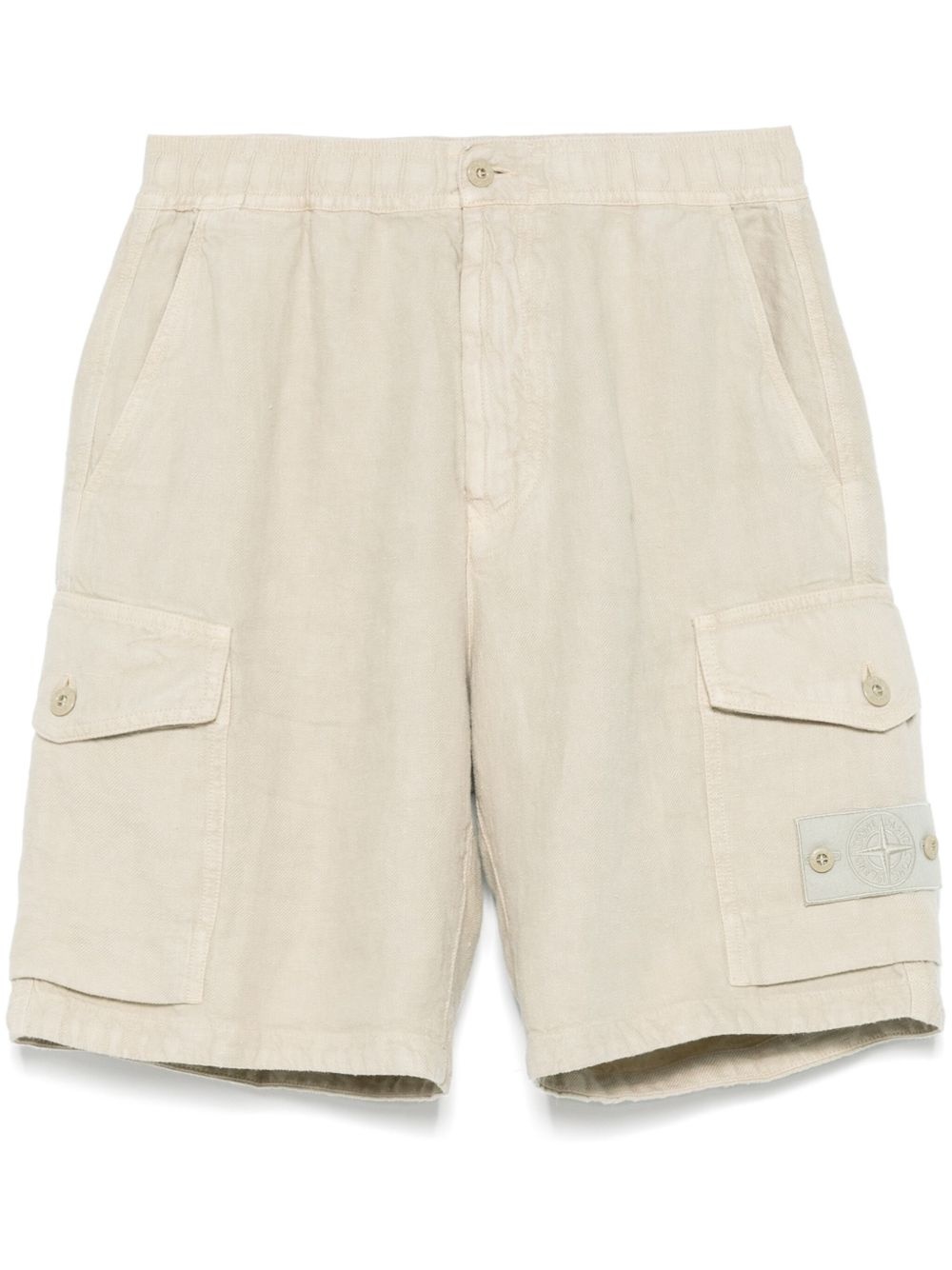 Compass-badge shorts Highlights - Light beige - Concealed fly and button fastening - Two side slash pockets - Two side cargo pockets - Rear flap pocket Imported Composition Lining: Cotton 100% Outer: Linen/Flax 100% SIZE & FIT Model measurements Height 6 ft 1 in(1.85 m) Bust/Chest 38.58 in(98 cm) Hips 37 in(94 cm) Waist 30.31 in(77 cm) FittingInformation Designed for relaxed fit, offering a comfortable loose fit over the leg Adjust this piece’s waistband to your preference using the drawstring Made from a midweight non-stretch fabric