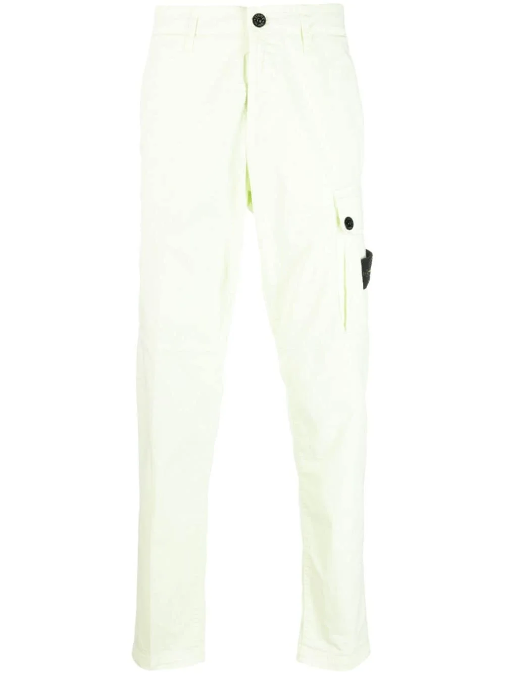 Compass badge slim-fit trousers Crafted from stretch Supima cotton in a light green hue, Stone Island's trousers are cut to a slim fit. The pair boasts the signature Compass badge at the leg for a branded finish. Highlights - Light green - Supima cotton - Signature compass motif - Logo patch to the side - Mid-rise - Belt loops - Front button and zip fastening - Two side slit pockets - Rear zip-fastening pocket - Side cargo pocket - Slim cut Imported Composition Cotton 97%, Elastane 3% SIZE & FIT Model measurements Height 6 ft 1 in(1.85 m) Bust/Chest 35.82 in(91 cm) Hips 37.79 in(96 cm) Waist 29.13 in(74 cm) FittingInformation Designed for a slim tapered leg, offering a close fit that sits just away from the leg with a closer fit towards the ankle Made from a midweight stretch fabric, this piece offers elasticity and flexibility when worn This piece fits true to size – take your usual size