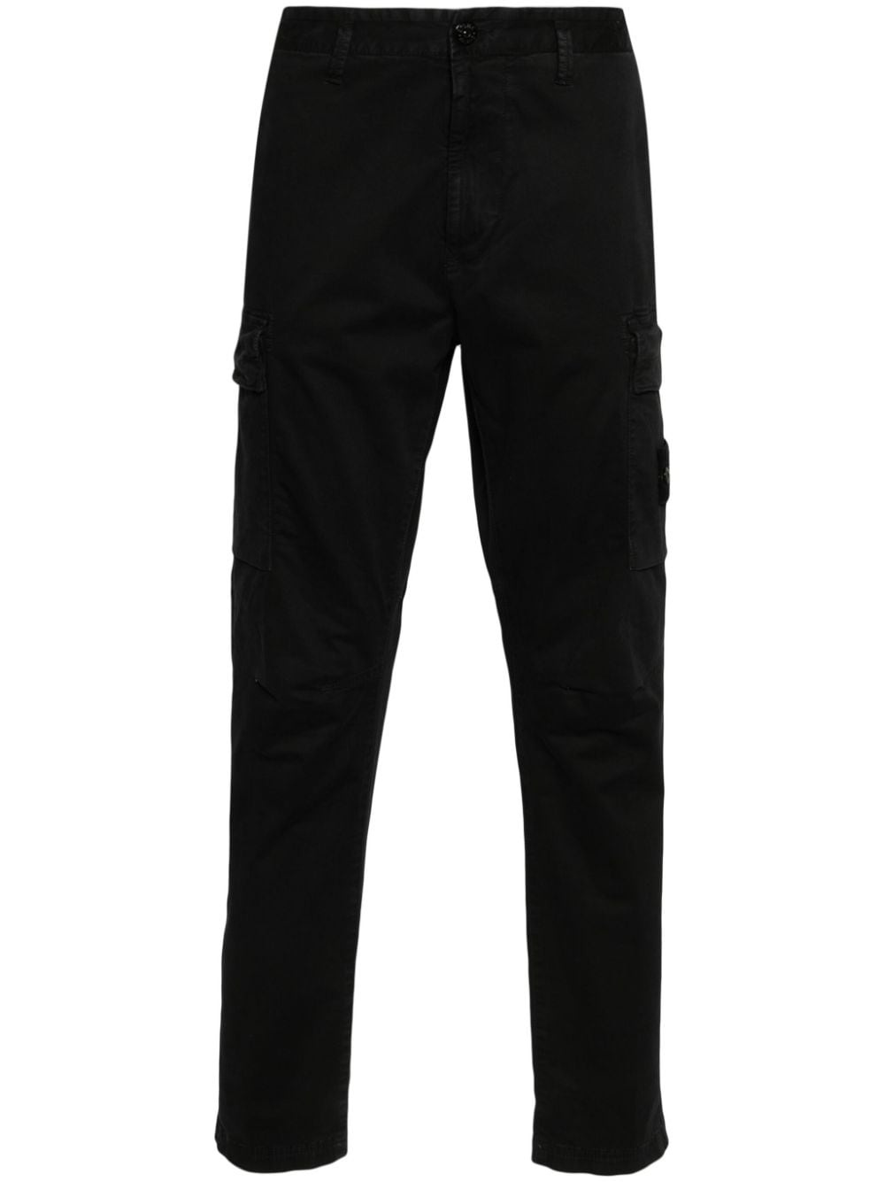 Compass-badge straight-leg trousers A symbol of Stone Island's innovative and functional spirit, the iconic Compass motif is found on the side of these cargo trousers. Crafted from stretch cotton, they're presented in black with utilitarian cargo pockets on the sides. Highlights - Black - Stretch-cotton - Twill weave - Signature detachable compass badge - Belt loops - Two side zip-fastening pockets - Two side cargo pockets - Rear stud-fastening pocket - Straight leg - Concealed fly and button fastening Imported Composition Cotton 98%, Spandex/Elastane 2% SIZE & FIT Model measurements Height 6 ft 2 in(1.88 m) Bust/Chest 35.03 in(89 cm) Hips 35.82 in(91 cm) Waist 27.95 in(71 cm) Measurement FRONT RISE 12 in(30.5 cm) INSIDE LEG 30.51 in(77.5 cm) BACK RISE 13.5 in(34.3 cm) HIPS 40.98 in(104.1 cm) Hem Width 13.5 in(34.3 cm) WAIST 34.01 in(86.4 cm) FittingInformation Designed for a relaxed straight leg, allowing a comfortable and loose fit over the leg Made from a midweight stretch fabric, this piece offers elasticity and flexibility when worn This piece fits true to size – take your usual size