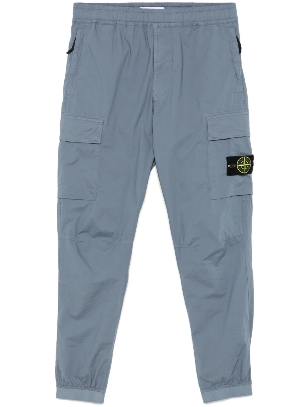 Compass-badge trousers Highlights - Blue-grey - Elasticated waistband with internal drawstring - Two side zip-fastening pockets - Two side cargo pockets - Rear zip-fastening pocket Imported Composition Cotton 97%, Elastane 3% Washing instructions Machine Wash