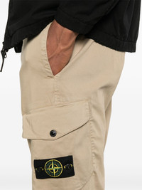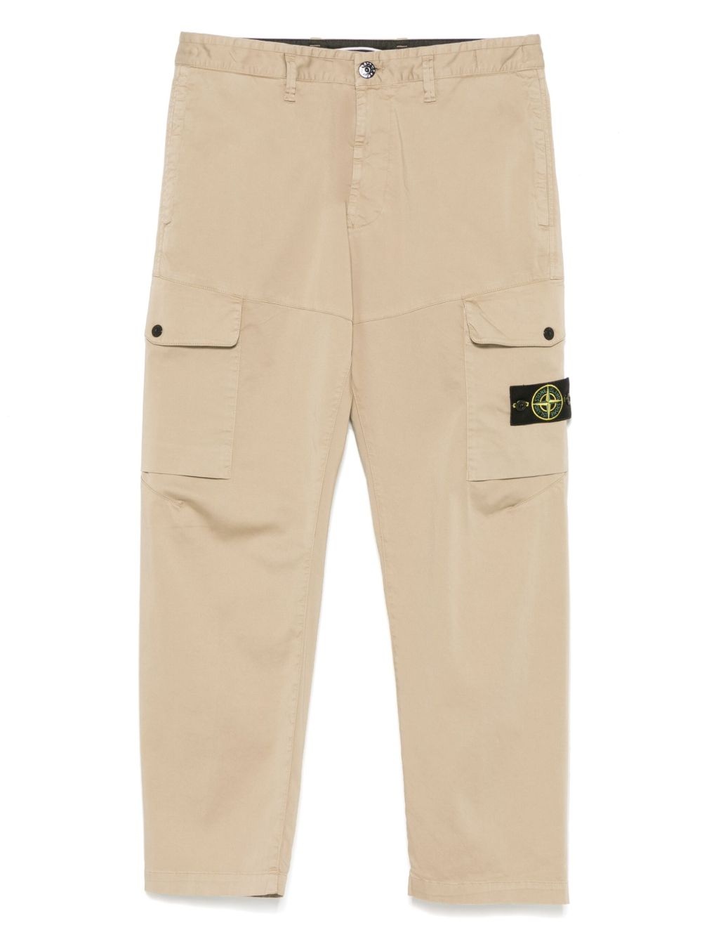 Compass-badge trousers Highlights - Sesame beige - Concealed fly and button fastening - Two side slit pockets - Two side cargo pockets - Rear welt pocket Imported Composition Cotton 98%, Elastane 2% SIZE & FIT Model measurements Height 6 ft 2 in(1.87 m) Bust/Chest 36.22 in(92 cm) Hips 37 in(94 cm) Waist 27.95 in(71 cm) FittingInformation Designed for a tapered leg, offering a loose unrestricted fit over the leg with a closer fit towards the ankle Made from a midweight stretch fabric, this piece offers elasticity and flexibility when worn