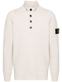 Compass-badge wool blend jumper Highlights - Off-white - Wool blend - Knitted construction - Signature detachable compass badge - Ribbed trim - Mock neck - Front button placket - Half front zip fastening - Long sleeves - Straight hem Imported Composition Wool 80%, Polyamide 20% SIZE & FIT Model measurements Height 6 ft 2 in(1.87 m) Bust/Chest 36.41 in(92.5 cm) Hips 37 in(94 cm) Waist 29.52 in(75 cm) Measurement CHEST 41.73 in(106 cm) LENGTH 26.37 in(67 cm) SLEEVE LENGTH 33.85 in(86 cm) Shoulder Width 15.74 in(40 cm) FittingInformation Designed for a regular fit, offering a comfortable loose fit throughout the body Made with a midweight knit, this piece offers some stretch This piece fits true to size – take your usual size