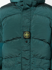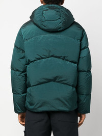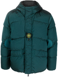 Compass-motif down puffer jacket First designed in 1982, Stone Island's Compass motif has since become an iconic signifier of the brand. Here, it adorns the centre of this forest-green puffer jacket. Arriving from a utilitarian-inspired collection, it is quilted and padded with feather down, lending both style and warmth. Highlights - Forest green - Down-feather filling - Padded design - Quilted - Classic hood - Concealed front fastening - Signature compass motif - Long sleeves - Inner sleeve patches - Two front flap pockets - Straight hem Imported Composition Outer: Polyamide 100% Lining: Polyester 100%, Feather Down 100% SIZE & FIT Model measurements Height 6 ft 1 in(1.85 m) Bust/Chest 38.58 in(98 cm) Hips 37 in(94 cm) Waist 30.31 in(77 cm) Measurement CHEST 54.33 in(138 cm) SLEEVE LENGTH 25.98 in(66 cm) LENGTH 30.31 in(77 cm) WAIST 55.11 in(140 cm) FittingInformation Designed to be unstructured, offering a loose fit throughout The internal drawstring at the hem allows for fitted preferences Made from a padded non-stretch fabric, giving it no natural elasticity This piece fits true to size – take your usual size Washing instructions Machine Wash