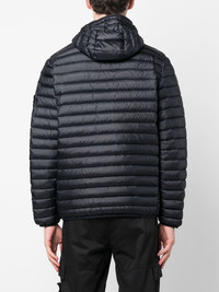 Compass-motif padded jacket navy blue feather down signature Compass motif quilted finish padded design front zip fastening classic hood long sleeves elasticated cuffs elasticated hem Made in Italy Composition Outer: Polyamide 100% Lining: Feather Down 100%, Polyamide 100% SIZE & FIT Model measurements Height 6 ft 3 in(1.91 m) Bust/Chest 37 in(94 cm) Hips 37.79 in(96 cm) Waist 28.34 in(72 cm) Measurement CHEST 48.03 in(122 cm) SLEEVE LENGTH 26.37 in(67 cm) FittingInformation Designed for a relaxed fit, this piece allows for comfort and movement when worn Made from a padded non-stretch fabric, giving it no natural elasticity This piece fits true to size – take your usual size Washing instructions Machine Wash