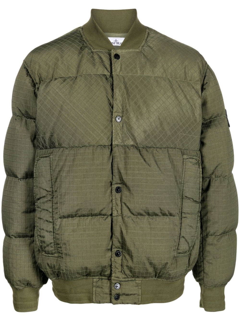 Compass-motif puffer jacket A brand mainstay since 1982, the Compass motif is featured across Stone Island's collections. Elevating even the most casual pieces, the nautical-inspired element can be spotted over the sleeve of this puffer jacket. Highlights - Olive green - Duck down - Padded design - Signature compass motif - Ribbed band collar - Long sleeves - Logo patch at the sleeve - Front press-stud fastening - Slip pockets to the sides - Straight hem Imported Composition Outer: Polyamide 100%, Polyurethane Resin 100% Lining: Polyamide 100%, Duck Down 80%, Duck Feathers 20% SIZE & FIT Model measurements Height 6 ft 1 in(1.86 m) Bust/Chest 37.4 in(95 cm) Hips 36.22 in(92 cm) Waist 29.52 in(75 cm) Measurement CHEST 43.3 in(110 cm) SLEEVE LENGTH 25.19 in(64 cm) LENGTH 26.77 in(68 cm) WAIST 43.3 in(110 cm) FittingInformation Designed to be unstructured, offering a loose fit throughout The ribbed hem offers a close, comfortable fit Made from a padded non-stretch fabric, giving it no natural elasticity This piece fits true to size – take your usual size Washing instructions Machine Wash