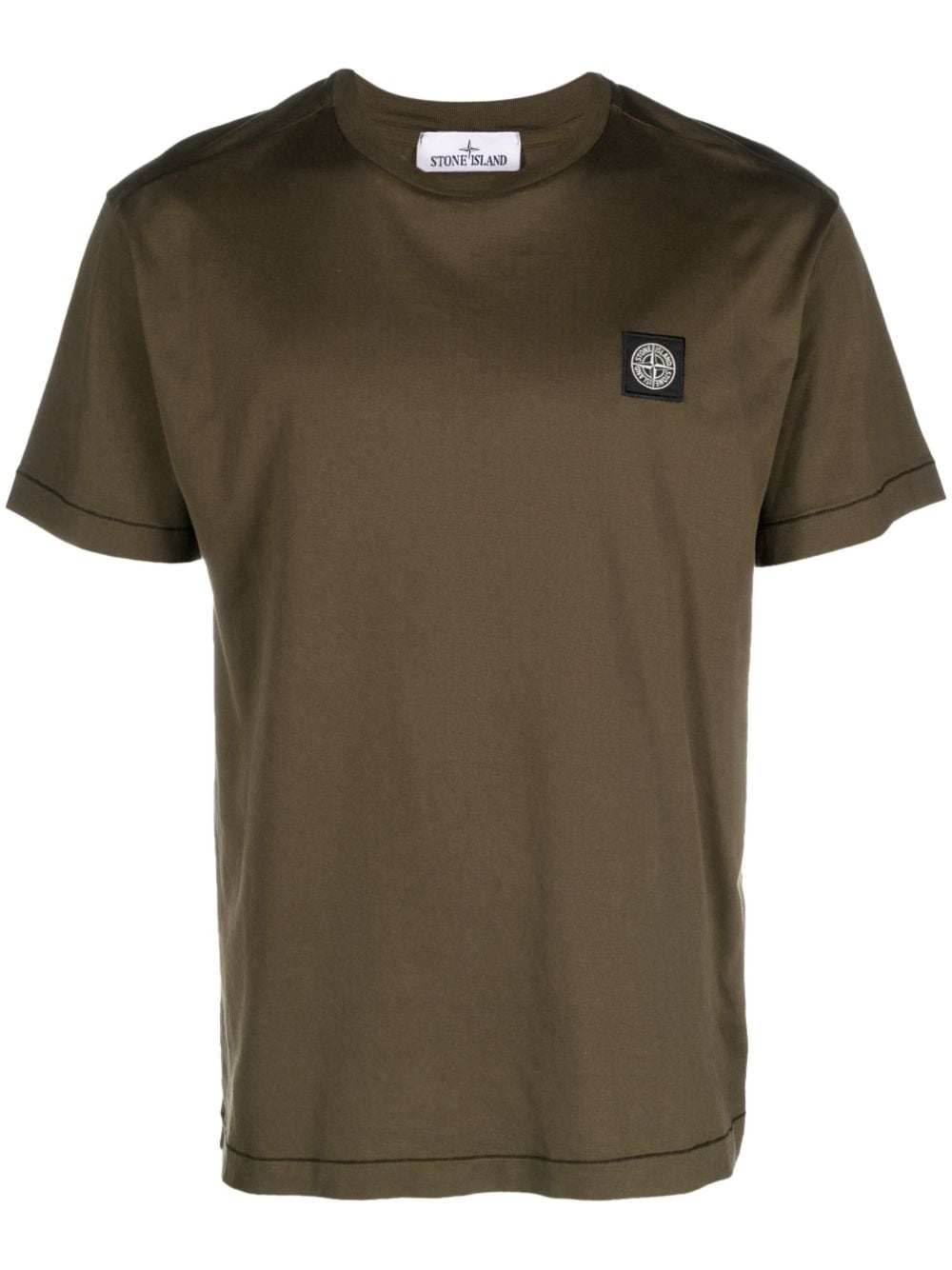 Compass-patch cotton T-shirt Crafted from pure cotton, this green T-shirt by Stone Island features a minimalist design. Cut to a regular fit, the silhouette is simply decorated with the brand's signature Compass patch on the left chest. Highlights - Olive green - Cotton - Signature compass motif - Logo patch at the chest - Crew neck - Short sleeves - Straight hem Imported Composition Cotton 100% SIZE & FIT Model measurements Height 6 ft 2 in(1.87 m) Bust/Chest 36.41 in(92.5 cm) Hips 35.43 in(90 cm) Waist 29.52 in(75 cm) FittingInformation Designed for a relaxed fit, this piece allows for comfort and movement when worn Made from a midweight non-stretch fabric, this piece offers minimal elasticity when worn This piece fits true to size – take your usual size Measurement CHEST 44.09 in(112 cm) SLEEVE LENGTH 17.12 in(43.5 cm) Shoulder Width 19.29 in(49 cm) Washing instructions Machine Wash