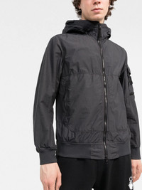 Compass-patch hooded jacket Stone Island's hooded jacket is free from decoration save for the brand's iconic Compass patch at one sleeve. The motif has been a label mainstay since its inception in 1982. Imported Composition Polyamide 100%, Polyurethane Resin 100% SIZE & FIT Model measurements Height 6 ft 2 in(1.88 m) Bust/Chest 37.79 in(96 cm) Hips 36.22 in(92 cm) Waist 31.1 in(79 cm) FittingInformation Designed to be unstructured, offering a loose fit throughout Made from a lightweight non-stretch fabric This piece fits true to size – take your usual size Washing instructions Machine Wash