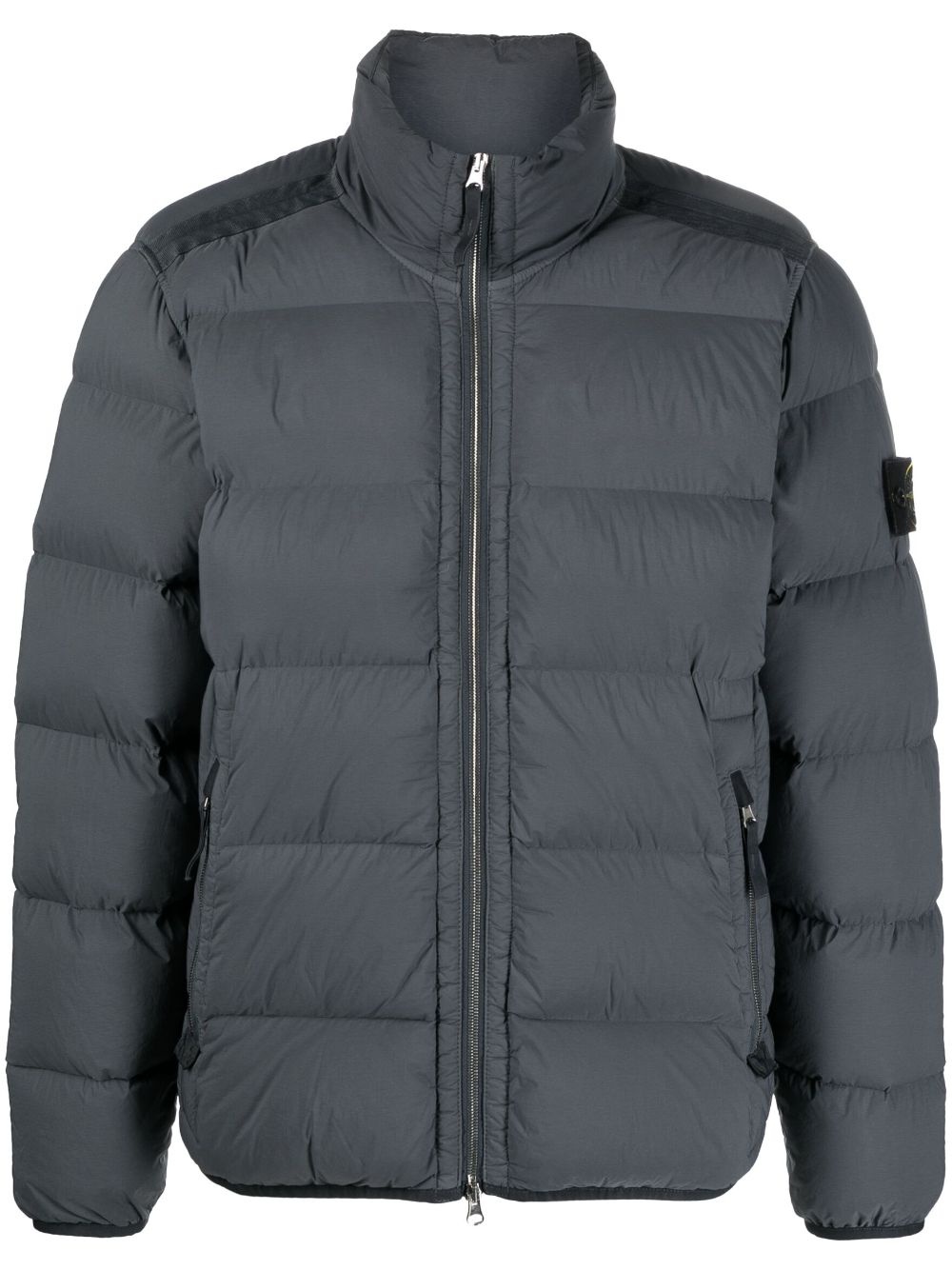 Compass-patch padded down jacket Highlights - Grey - Down-feather filling - Padded design - Signature compass motif - Logo patch at the sleeve - High neck - Front two-way zip fastening - Two side zip-fastening pockets - Long sleeves - Elasticated cuffs and hem Imported Composition Outer: Polyamide 84%, Elastane 16% Lining: Duck Down 90%, Polyamide 84%, Elastane 16%, Duck Feathers 10% SIZE & FIT Model measurements Height 6 ft 2 in(1.87 m) Bust/Chest 38.18 in(97 cm) Hips 36.61 in(93 cm) Waist 29.13 in(74 cm) Measurement CHEST 48.81 in(124 cm) SLEEVE LENGTH 27.55 in(70 cm) Shoulder Width 19.29 in(49 cm) FittingInformation Designed for a relaxed fit, this piece allows for comfort and movement when worn The elasticated hem allows for movement and a comfortable fit Made from a padded stretch fabric, giving it elasticity and a flexible fit This piece fits true to size – take your usual size Washing instructions Machine Wash
