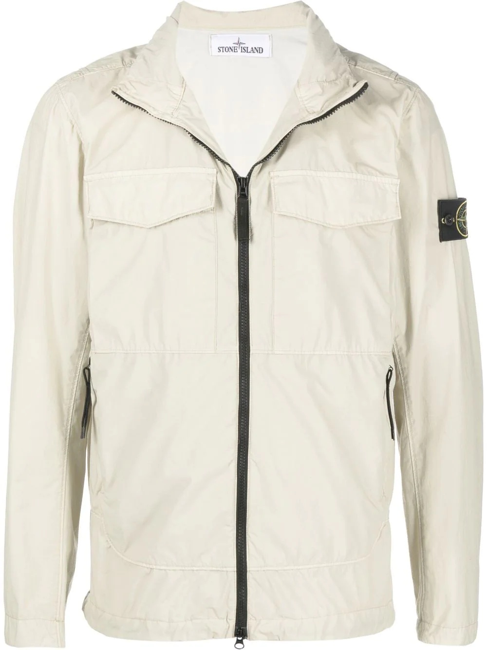 Compass-patch zip-up jacket The iconic Stone Island Compass motif has been a symbol of quality, innovation and style since the brand's inception in 1982. Featured as a logo patch to the sleeve of this lightweight beige jacket, this detail presents a key element of the brand's history. Imported Composition Polyamide 100%, Polyurethane Resin 100% SIZE & FIT Model measurements Height 6 ft 2 in(1.88 m) Bust/Chest 37.79 in(96 cm) Hips 38.58 in(98 cm) Waist 29.52 in(75 cm) FittingInformation This piece fits true to size. We recommend you get your regular size Cut for a loose fit Made with a mid-weight non-stretch fabric Washing instructions Machine Wash