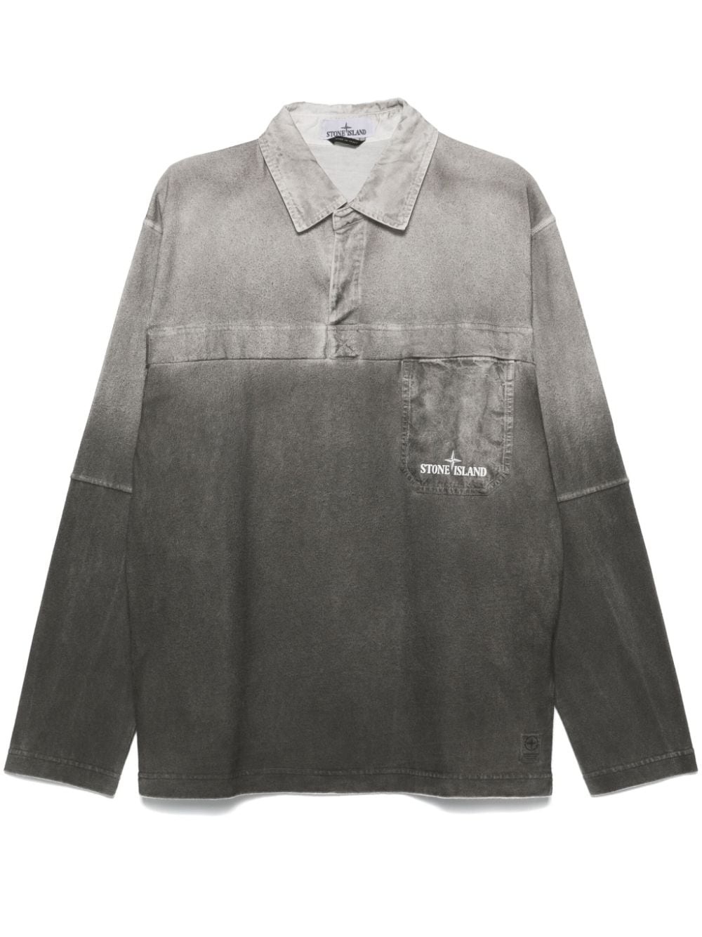 Compass-print polo shirt Highlights - Taupe grey - Recover® cotton - Jersey texture - Melange effect - Ombre effect - Logo print to the front - Signature compass motif - Polo collar - Press-stud placket - Long sleeves - Short side slits - Straight hem - Chest patch pocket Made in Italy Composition Cotton 50%, Recover® Cotton 50% SIZE & FIT Model measurements Height 6 ft 1 in(1.86 m) Bust/Chest 37.4 in(95 cm) Hips 36.22 in(92 cm) Waist 29.52 in(75 cm) FittingInformation Designed for a relaxed fit, this polo shirt offers comfort and movement Made from a midweight non-stretch fabric, this piece offers minimal elasticity when worn This piece fits true to size – take your usual size