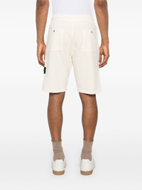 cotton track shorts Highlights - Light beige - Elasticated drawstring waistband - Two diagonal pockets to the sides - Two rear patch pockets - Signature detachable compass badge Imported Composition Lining: Cotton 100% Outer: Cotton 100% SIZE & FIT Model measurements Height 6 ft 2 in(1.87 m) Bust/Chest 37 in(94 cm) Hips 33.85 in(86 cm) Waist 27.95 in(71 cm) FittingInformation Designed for relaxed fit, offering a comfortable loose fit over the leg Adjust this piece’s waistband to your preference using the drawstring Made from a midweight non-stretch fabric, this piece offers minimal elasticity when worn