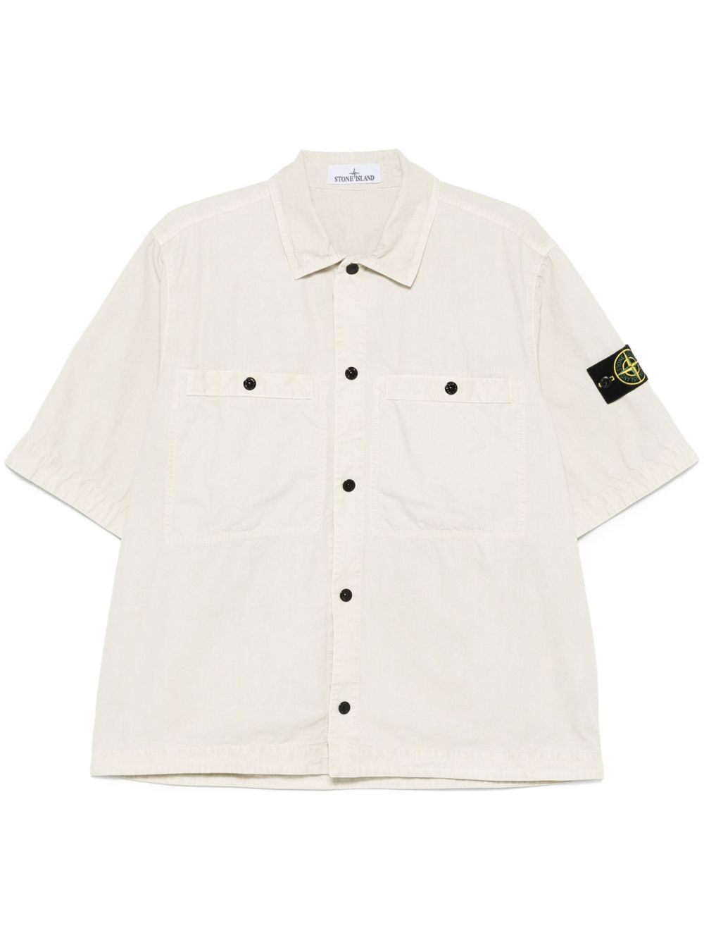 detachable-badge shirt Highlights - Light beige - Front press-stud fastening - Two chest welt pockets - Box-pleat detail - Short sleeves Imported Composition Organic Cotton 100% SIZE & FIT Model measurements Height 6 ft 2 in(1.87 m) Bust/Chest 38.97 in(99 cm) Hips 37.99 in(96.5 cm) Waist 29.52 in(75 cm) FittingInformation Designed for a relaxed fit, this piece allows for comfort and movement when worn Made from a midweight non-stretch fabric Washing instructions Machine Wash