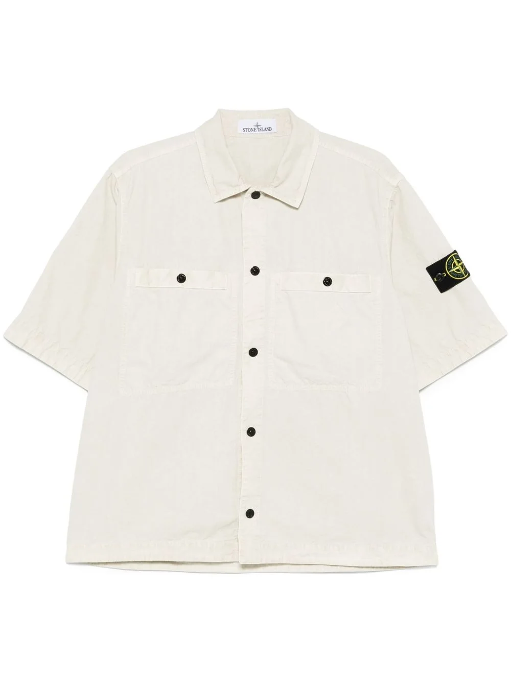 detachable-badge shirt Highlights - Light beige - Front press-stud fastening - Two chest welt pockets - Box-pleat detail - Short sleeves Imported Composition Organic Cotton 100% Washing instructions Machine Wash