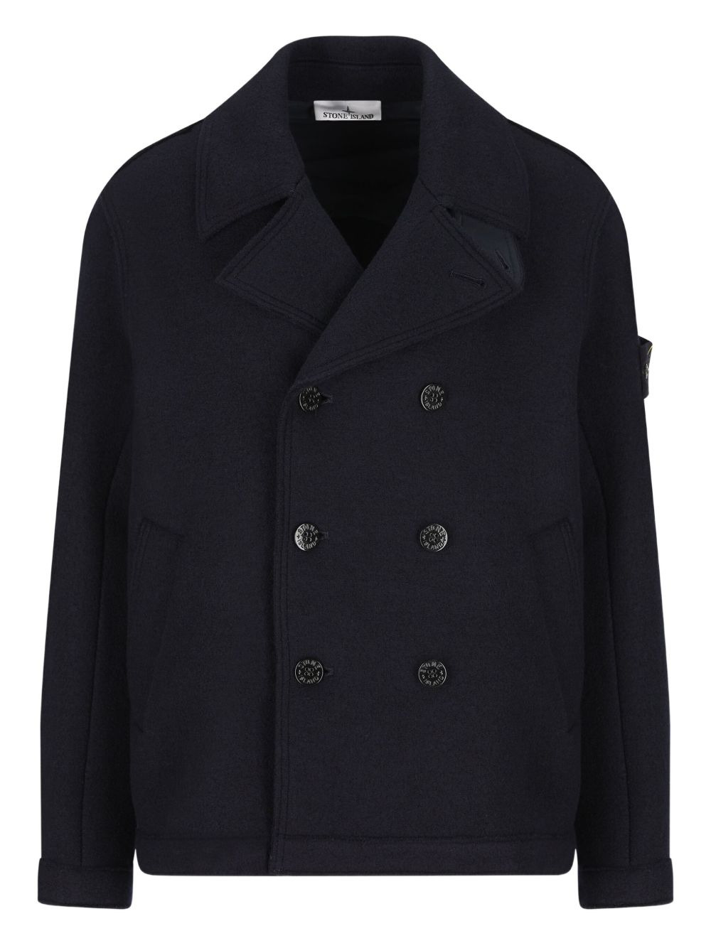 double-breasted wool peacoat Highlights - Blue - Virgin wool - Double-breasted fastening - Branded buttons - Notched lapel - Patch pocket Imported Composition Wool 80%, Polyamide 20% Washing instructions Read Manufacturer Guidelines