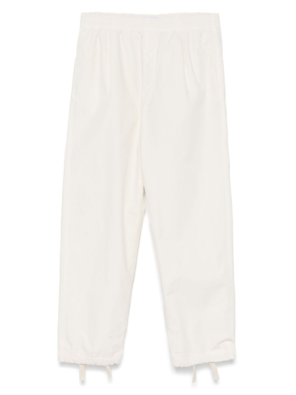 embroidered-logo trousers Highlights - Light beige - Elasticated waistband with internal drawstring - Two side slash pockets - Ankle strap - Two rear patch pockets Made in Italy Composition Cotton 100% SIZE & FIT Model measurements Height 6 ft 0 in(1.84 m) Bust/Chest 37.79 in(96 cm) Hips 37 in(94 cm) Waist 31.49 in(80 cm) FittingInformation Designed for a tapered leg, offering a loose unrestricted fit over the leg with a closer fit towards the ankle The internal drawstring at the hem allows for fitted preferences at the ankle Made from a midweight non-stretch fabric
