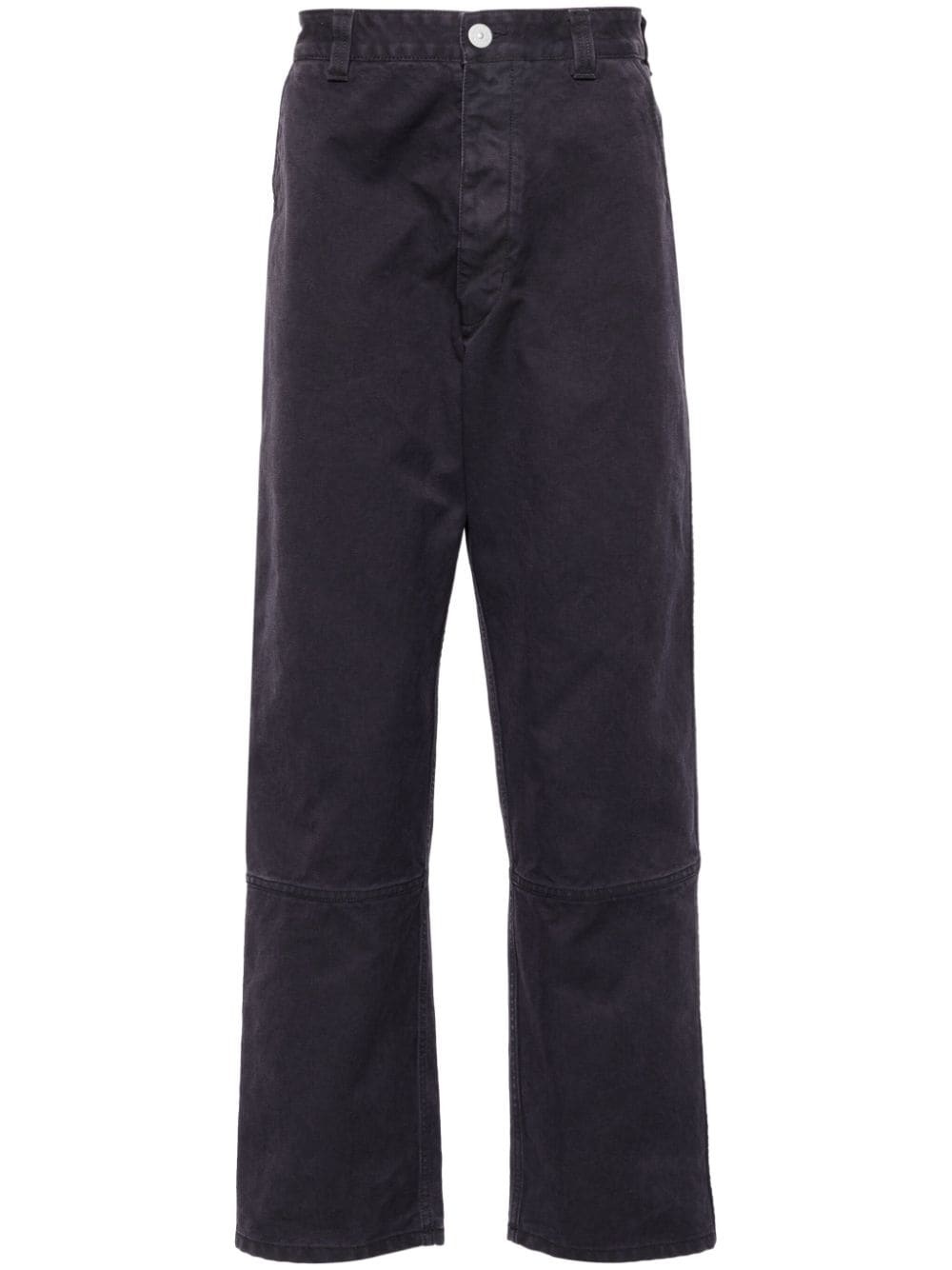 logo-embroidered straight-leg jeans Highlights - Blue tint - Cotton - Canvas - Embroidered logo to the rear - Front button fastening - Belt loops - Two diagonal pockets to the sides - Panelled design - Rear multiple patch pockets - Straight leg Made in Italy Composition Cotton 100%, Polyurethane Resin 65%, Acrylic Resin 35% SIZE & FIT Model measurements Height 6 ft 2 in(1.87 m) Bust/Chest 38.18 in(97 cm) Hips 36.61 in(93 cm) Waist 29.13 in(74 cm) FittingInformation Designed for a tapered leg, offering a loose unrestricted fit over the leg with a closer fit towards the ankle Made from a midweight non-stretch fabric