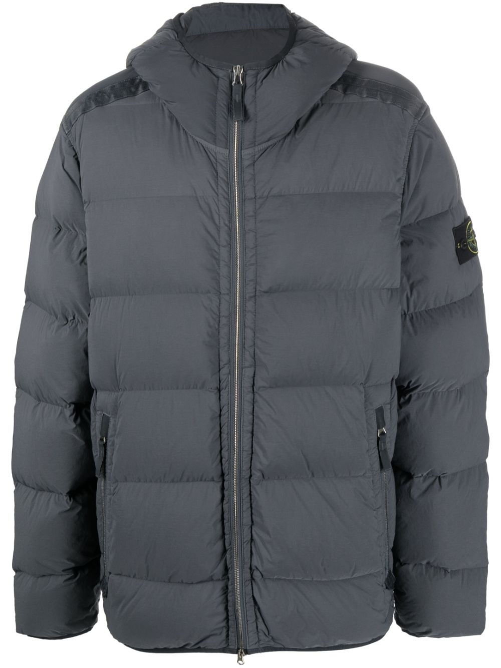 feather down hooded coat Highlights - Medium grey - Feather down - Padded design - Quilted panels - Signature compass motif - Logo patch at the sleeve - Classic hood - High neck - Front zip fastening - Two side zip-fastening pockets Imported Composition Outer: Polyamide 84%, Elastane 16% Lining: Feather Down 100%, Polyamide 86%, Elastane 14% SIZE & FIT Model measurements Height 6 ft 2 in(1.88 m) Bust/Chest 37.79 in(96 cm) Hips 35.82 in(91 cm) Waist 29.92 in(76 cm) Measurement CHEST 45.66 in(116 cm) SLEEVE LENGTH 27.55 in(70 cm) LENGTH 28.34 in(72 cm) WAIST 44.88 in(114 cm) FittingInformation Made from a padded stretch fabric, giving it elasticity and a flexible fit Washing instructions Machine Wash
