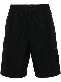 Ghost cargo shorts The solid-black palette of these Stone Island Ghost cargo shorts is inspired by the concept of military camouflage – even the signature Compass badge is designed to blend in. They’re cut to a straight-leg profile from organic cotton O-Ventile with a dense windproof weave and plethora of zip pockets. Highlights - Black - Organic cotton - Twill weave - Windproof - Elasticated waistband - Two side zip-fastening pockets - Two side zip-fastening cargo pockets - Signature detachable compass badge - Two rear zip-fastening pockets - Straight leg - Above-knee length - Concealed fly and button fastening Imported Composition Organic Cotton 100% SIZE & FIT Model measurements Height 6 ft 2 in(1.87 m) Bust/Chest 36.41 in(92.5 cm) Hips 37 in(94 cm) Waist 29.52 in(75 cm) FittingInformation Designed for a straight-leg fit, offering an unrestricted and comfortable fit over the leg Adjust this piece’s waistband to your preference using the drawstring Made from a midweight non-stretch fabric, this piece offers minimal elasticity when worn This piece fits true to size – take your usual size Washing instructions Machine Wash