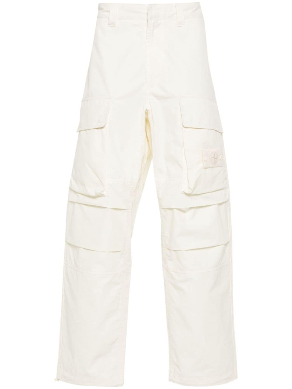 Ghost cargo trousers The solid-white palette of these Stone Island Ghost cargo trousers is inspired by the concept of camouflage – even the signature Compass badge is designed to blend in. They’re cut to a straight-leg profile from organic-cotton O-Ventile with a dense windproof weave and pleated at the knees for volume. Highlights - White - Organic cotton - Twill weave - Logo-engraved buttons - Mid-rise - Rear elasticated waistband - Belt loops - Two side slit pockets - Two front cargo pockets - Signature detachable compass badge - Pleat detailing - Rear flap pocket - Unlined - Straight leg - Concealed front button, hook and zip fastening Imported Composition Cotton 100% SIZE & FIT Model measurements Height 6 ft 2 in(1.87 m) Bust/Chest 36.41 in(92.5 cm) Hips 37 in(94 cm) Waist 29.52 in(75 cm) FittingInformation Designed with a wide leg, offering a loose and roomy fit Made from a midweight non-stretch fabric This piece fits true to size – take your usual size Washing instructions Machine Wash