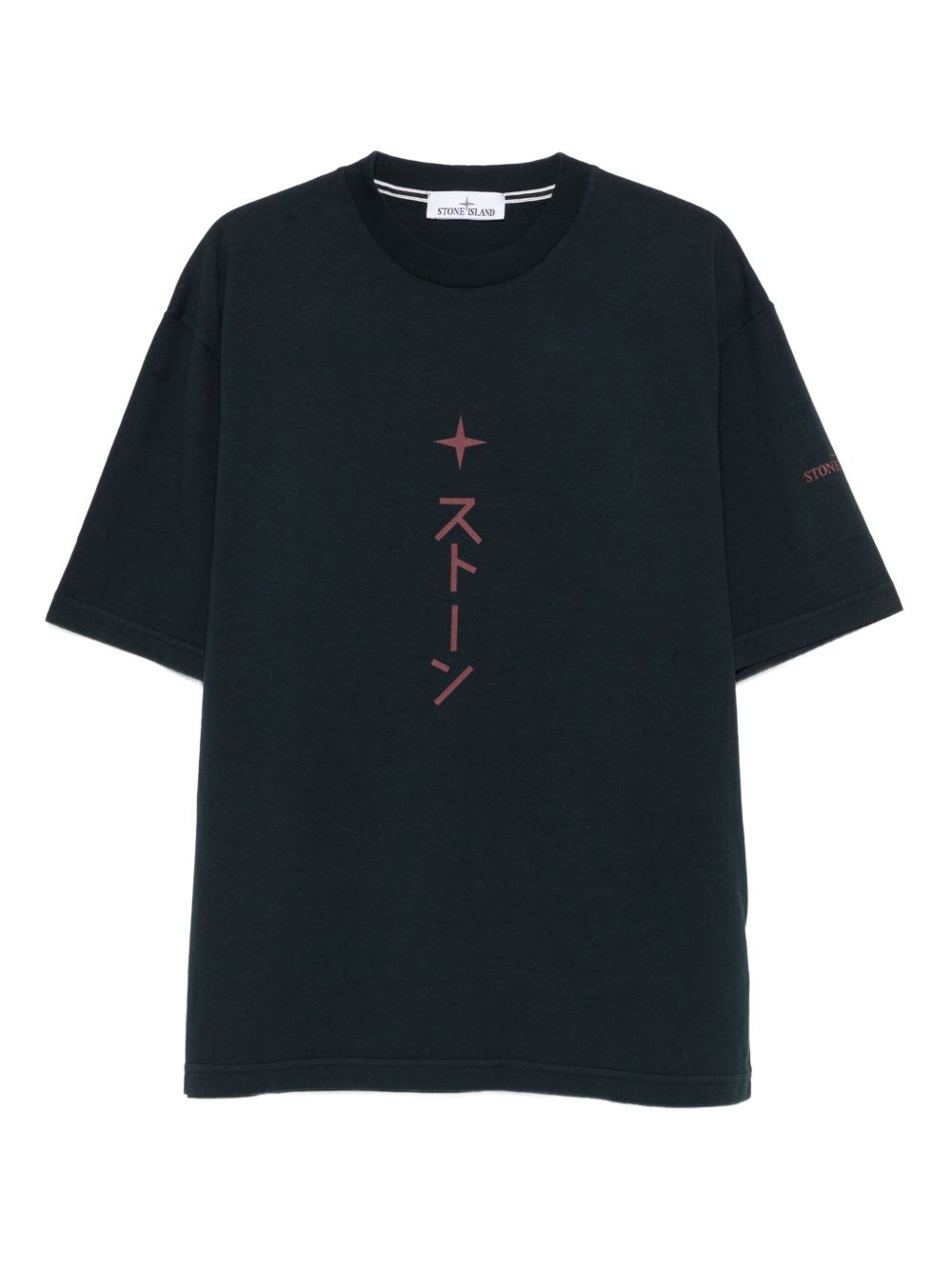graphic-print T-shirt Highlights - Navy blue - Crew neck - Short sleeves - Graphic print - Japanese lettering Imported Composition Organic Cotton 100% SIZE & FIT Model measurements Height 6 ft 1 in(1.85 m) Bust/Chest 38.58 in(98 cm) Hips 37 in(94 cm) Waist 30.31 in(77 cm) Washing instructions Read Manufacturer Guidelines