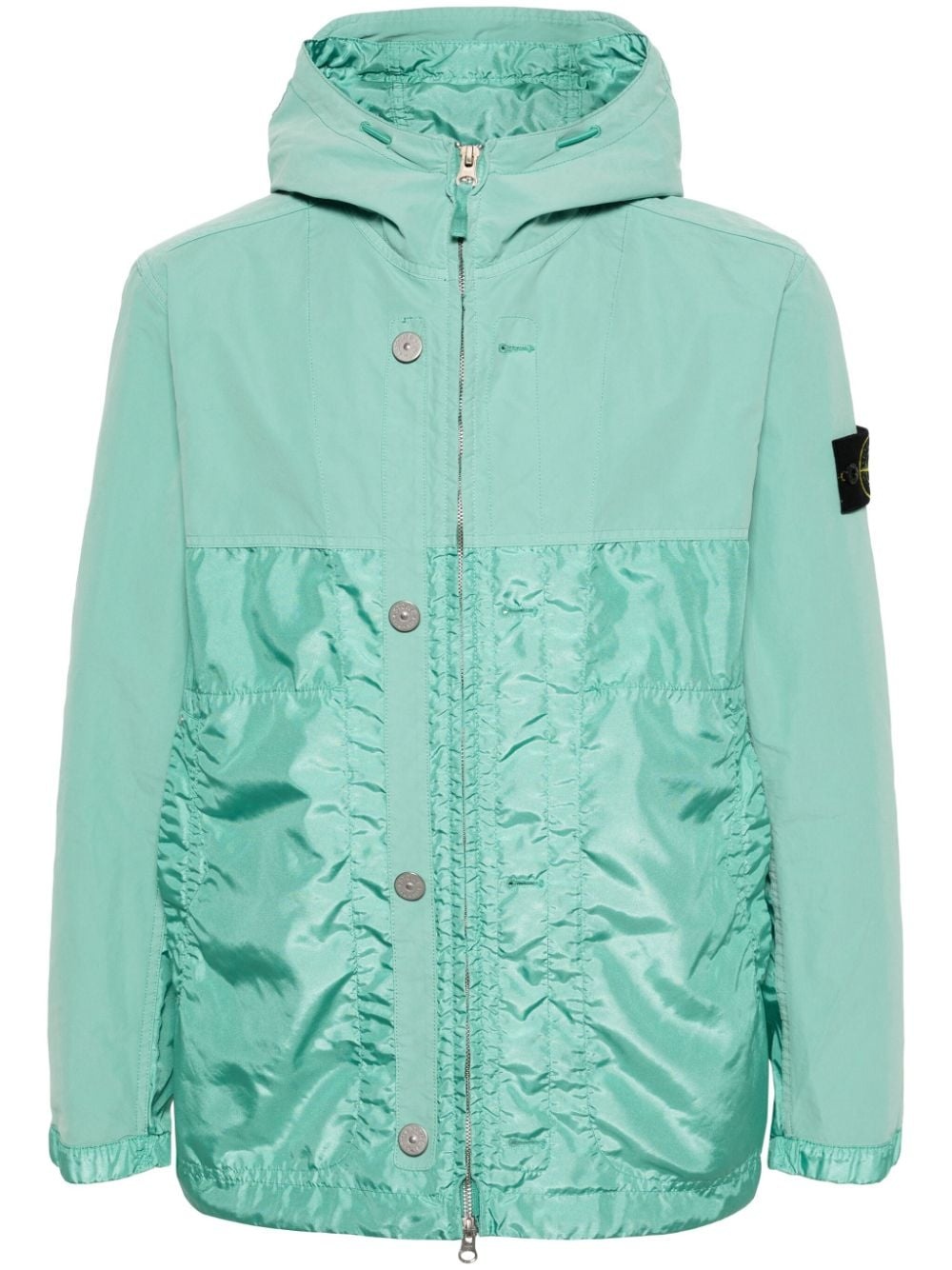 lightweight hooded jacket Highlights - Light green - Lightweight - Panelled design - High-shine detailing - Garment dyed - Classic hood - Signature detachable compass badge - Long sleeves with elasticated and press-stud fastening cuffs - Two side stud-fastening pockets - Drawstring hem - Front two-way zip and button fastening Made in Italy Composition Polyester 100% SIZE & FIT Model measurements Height 6 ft 1 in(1.85 m) Bust/Chest 36.22 in(92 cm) Hips 36.22 in(92 cm) Waist 27.55 in(70 cm) FittingInformation Designed for a relaxed fit, this piece allows for comfort and movement when worn The adjustable drawstring means that you can adjust this piece’s fit to suit your comfort and preference Made from a midweight non-stretch fabric This piece fits true to size – take your usual size Measurement CHEST 41.33 in(105 cm) SLEEVE LENGTH 33.26 in(84.5 cm) LENGTH 26.77 in(68 cm) Washing instructions Machine Wash