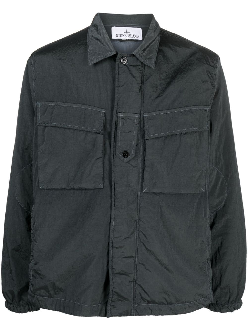 lightweight shirt jacket This shirt jacket by Stone Island is crafted from durable and lightweight material with a lustrous dark grey finish that lends a utilitarian style. Two large patch pockets decorate the front of its long-sleeved silhouette. Highlights - Dark grey - Spread collar - Front button fastening - Concealed front zip fastening - Two front patch pockets - Long sleeves - Straight hem Imported Composition Polyamide 100% SIZE & FIT Model measurements Height 6 ft 1 in(1.85 m) Bust/Chest 38.58 in(98 cm) Hips 37 in(94 cm) Waist 30.31 in(77 cm) FittingInformation Designed for a regular fit, allowing for a comfortably loose fit throughout the body Made from a padded non-stretch fabric, giving it no natural elasticity This piece fits true to size – take your usual size Washing instructions Machine Wash