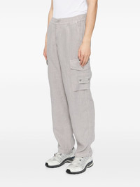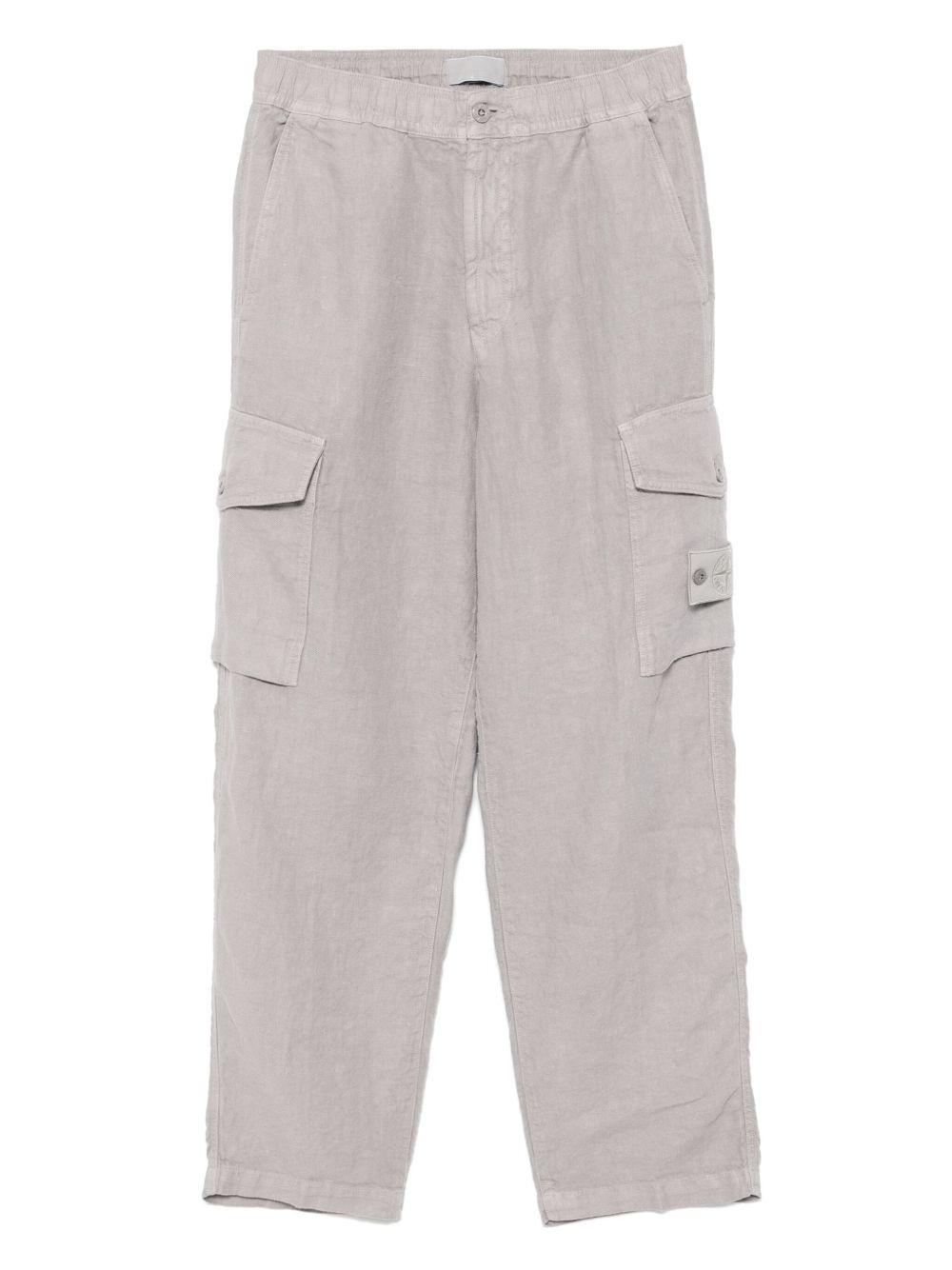 linen trousers Highlights - Light grey - Front button and zip fastening - Elasticated drawstring waistband - Two side cargo pockets Imported Composition Linen/Flax 100% SIZE & FIT Model measurements Height 6 ft 2 in(1.88 m) Bust/Chest 34.25 in(87 cm) Hips 34.64 in(88 cm) Waist 26.77 in(68 cm) FittingInformation Designed for a straight-leg, allowing for an unrestricted and comfortable fit over the leg Adjust this piece’s waistband to your preference using the drawstring Made from a midweight non-stretch fabric