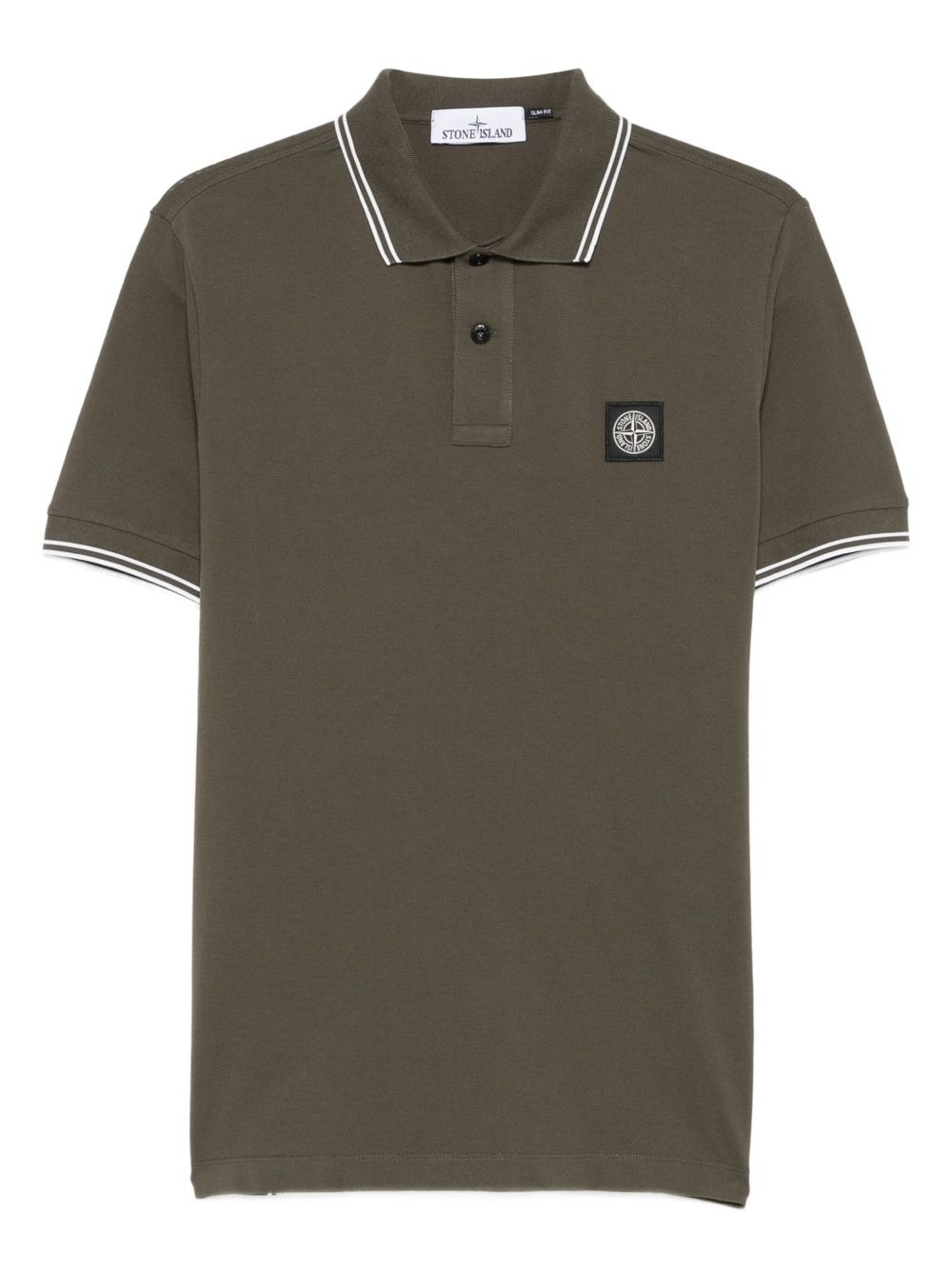 logo-applique polo shirt Highlights - Olive green - Front button placket - Side stripe detailing - Polo collar - Short sleeves Imported Composition Cotton 97%, Organic Cotton 95%, Elastane 5%, Polyester 3% SIZE & FIT Model measurements Height 6 ft 1 in(1.85 m) Bust/Chest 38.58 in(98 cm) Hips 37 in(94 cm) Waist 30.31 in(77 cm) FittingInformation Designed for a regular fit, this polo shirt offers a comfortable loose fit throughout the body Made from a midweight stretch fabric, this piece offers elasticity and flexibility when worn Washing instructions Machine Wash