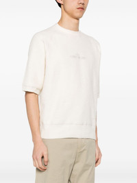 logo-embroidered short-sleeve jumper Highlights - Milk white - Cotton blend - Knitted construction - Brushed effect - Contrast stitching - Crew neck - Short raglan sleeves with ribbed trim - Embroidered logo to the front - Authenticity qr code - Ribbed hem Made in Italy Composition Cotton 73%, Polyamide 25%, Elastane 2% SIZE & FIT Model measurements Height 6 ft 2 in(1.87 m) Bust/Chest 33.46 in(85 cm) Hips 36.22 in(92 cm) Waist 29.52 in(75 cm) FittingInformation Designed to be unstructured, offering a loose fit throughout Made from a midweight stretch fabric, this piece offers elasticity and flexibility when worn