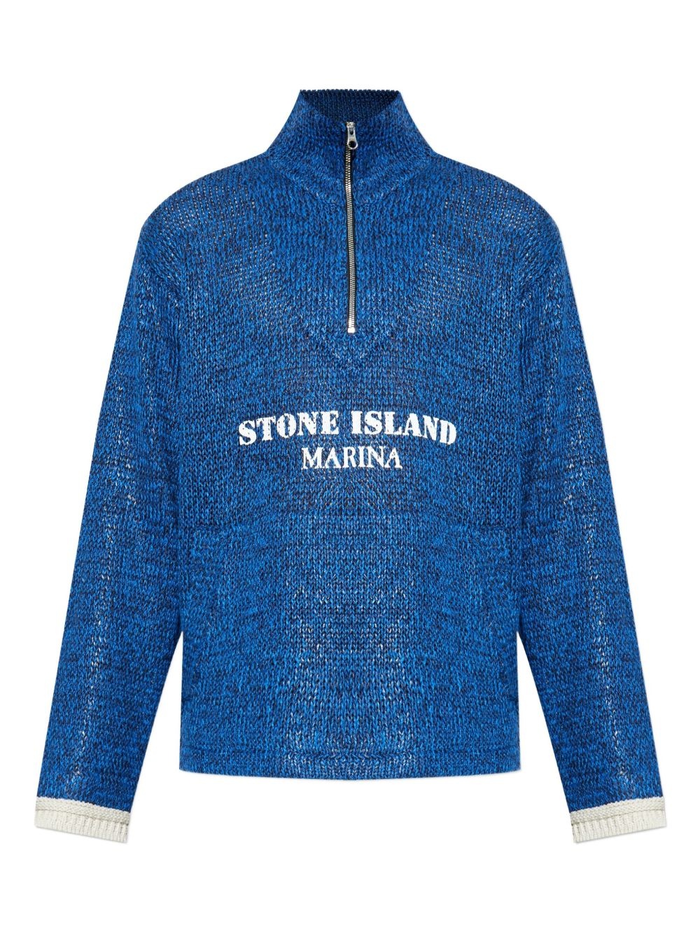 logo-embroidered sweatshirt Highlights - Royal blue - Short front zip fastening - High neck - Long sleeves - Straight hem Made in Italy Composition Linen/Flax 65%, Cotton 23%, Polyester 12%