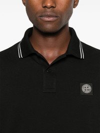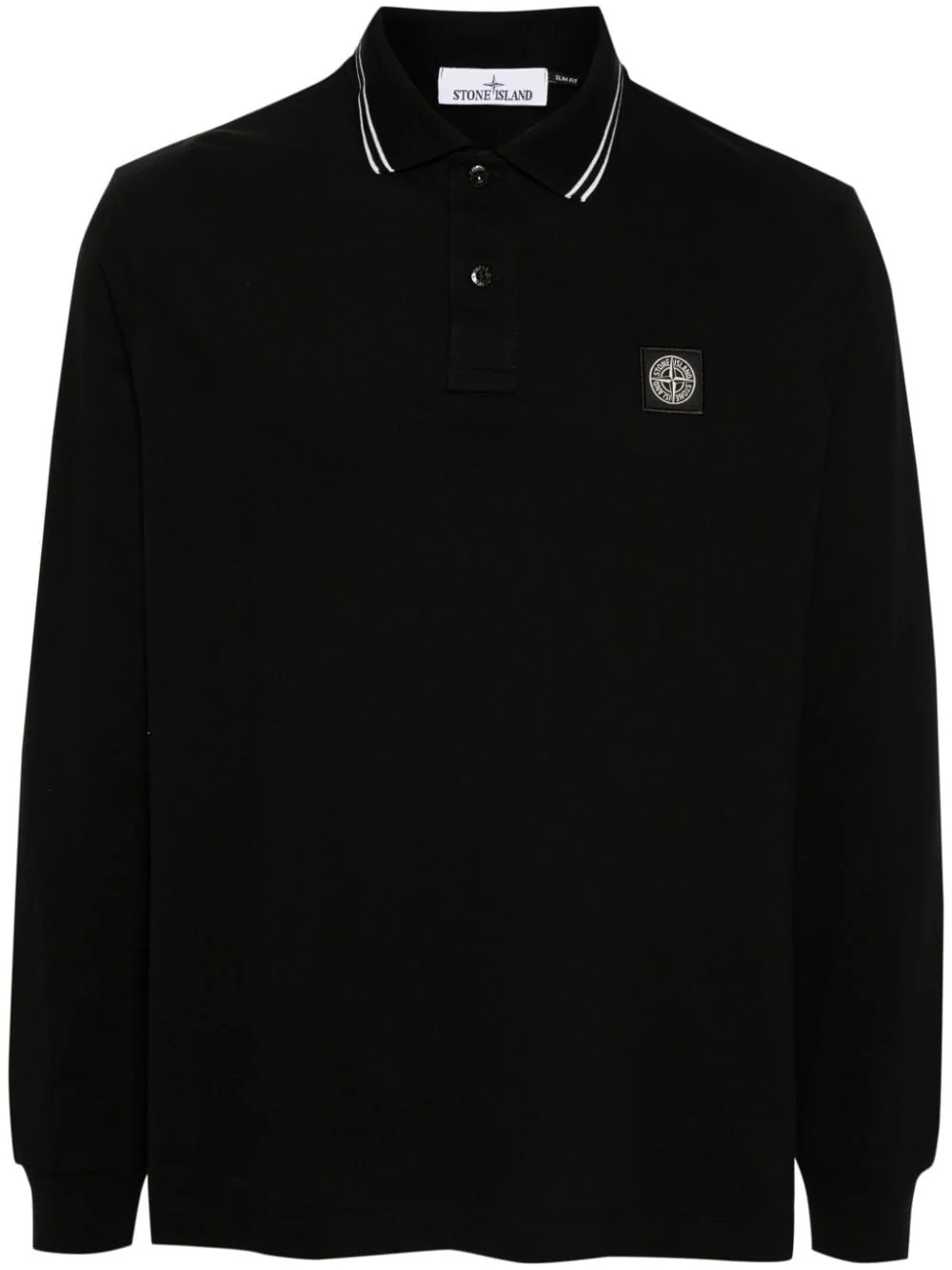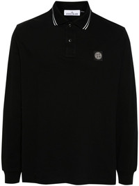 logo-patch polo shirt Highlights - Black - Cotton blend - Stretch-design - Pique weave - Striped edge - Polo collar - Long sleeves - Signature compass motif - Short side slits - Straight hem - Short front button fastening Imported Composition Cotton 95%, Elastane 5% Washing instructions Machine Wash