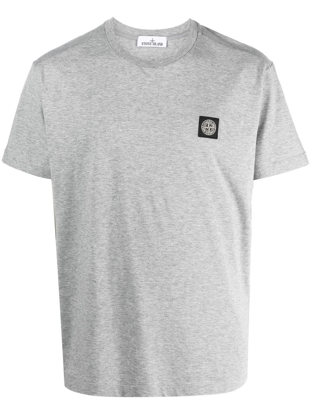 logo-patch short-sleeve T-shirt Highlights - Logo-patch short-sleeve t-shirt from stone island featuring light grey, cotton, jersey knit, logo patch at the chest, round neck, short sleeves and straight hem. Made in United Kingdom Composition Cotton 100% SIZE & FIT Model measurements Height 6 ft 2 in(1.87 m) Bust/Chest 38.18 in(97 cm) Hips 36.61 in(93 cm) Waist 29.13 in(74 cm) FittingInformation Designed for a relaxed fit, this piece allows for comfort and movement when worn Made from a lightweight non-stretch fabric, this piece offers minimal elasticity when worn Measurement CHEST 32.48 in(82.5 cm) WAIST 27.36 in(69.5 cm) SLEEVE LENGTH 7.87 in(20 cm)