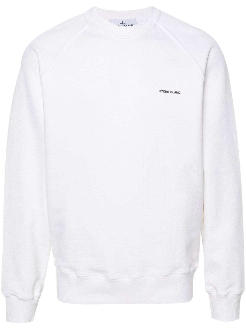 logo-print cotton sweatshirt Crafted from soft cotton jersey in a white colourway, Stone Island's crew-neck sweatshirt is punctuated with a subtle contrasting black logo print at the chest. The piece is designed with long raglan sleeves and ribbed edges. Highlights - White - Cotton - Jersey texture - Ribbed trim - Crew neck - Long raglan sleeves - Elasticated cuffs - Logo print at the chest - French terry lining - Elasticated hem Imported Composition Cotton 100% SIZE & FIT Model measurements Height 6 ft 2 in(1.87 m) Bust/Chest 38.18 in(97 cm) Hips 36.61 in(93 cm) Waist 29.13 in(74 cm) FittingInformation Designed for a relaxed fit, this piece allows for comfort and movement when worn The ribbed hem offers a close, comfortable fit Made from a midweight non-stretch fabric, this piece offers minimal elasticity when worn This piece fits true to size – take your usual size