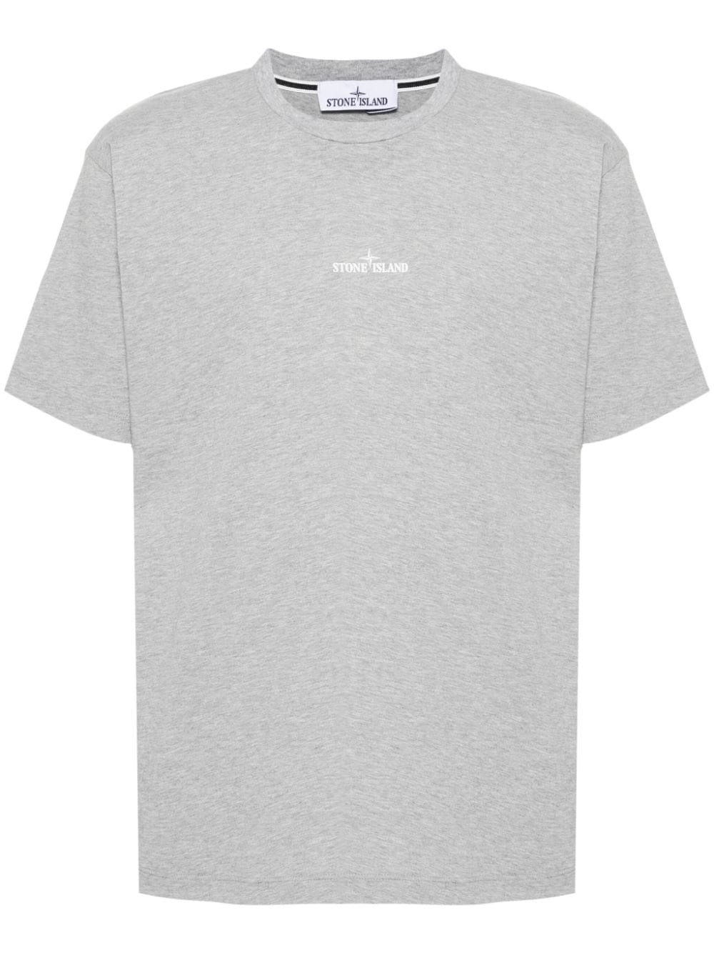 logo-print cotton T-shirt Stone Island's Compass badge debuted in 1982 to symbolise the brand’s spirit of adventure. The one at the back of this grey T-shirt is designed to look worn in contrast to the neat moniker at the chest. Highlights - Grey - Cotton - Jersey texture - Melange effect - Round neck - Logo print to the front - Straight hem - Signature compass motif to the rear Made in United Kingdom Composition Cotton 100% SIZE & FIT Measurement CHEST 51.18 in(130 cm) SLEEVE LENGTH 9.44 in(24 cm) Washing instructions Machine Wash