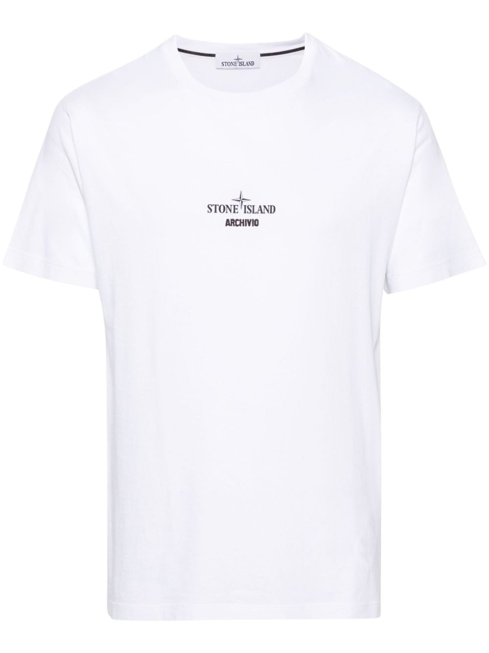 logo-print cotton T-shirt Highlights - White - Cotton - Jersey texture - Logo print at the chest - Text embroidered at the chest - Graphic print to the rear - Crew neck - Drop shoulder - Short sleeves - Straight hem - Authenticity qr code Imported Composition Cotton 100% SIZE & FIT Model measurements Height 6 ft 2 in(1.88 m) Bust/Chest 36.61 in(93 cm) Hips 35.82 in(91 cm) Waist 27.95 in(71 cm) Measurement CHEST 38.58 in(98 cm) SLEEVE LENGTH 7.48 in(19 cm) Washing instructions Machine Wash